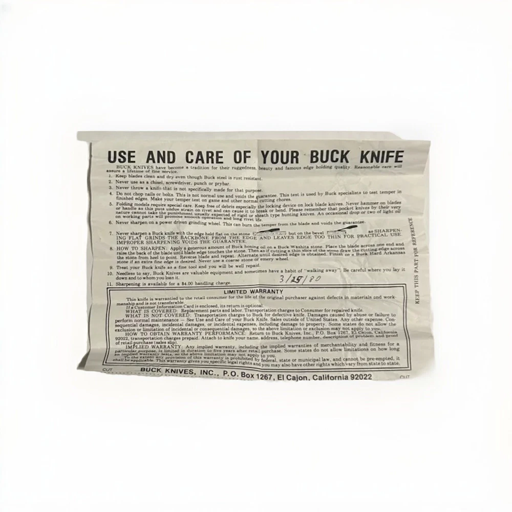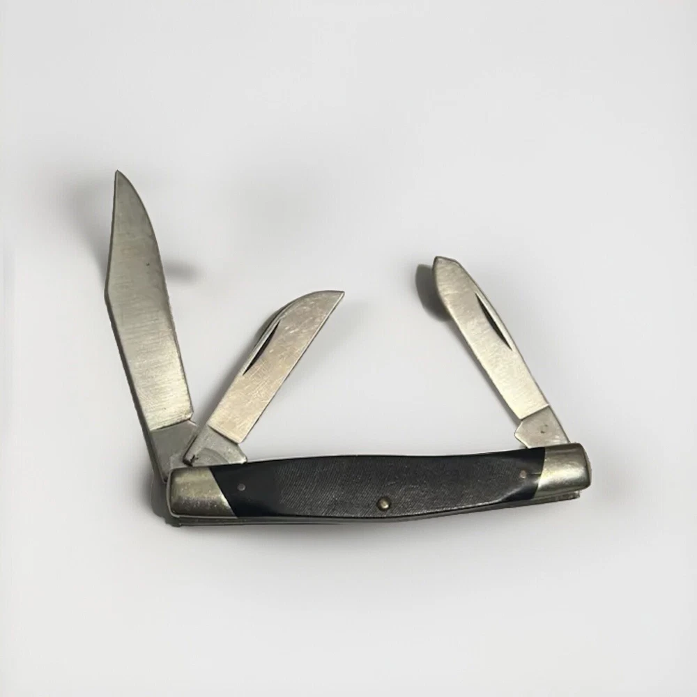 This Buck Model 303 Cadet 3 Blade Stockman Knife is a must-have for any knife collector or enthusiast. The knife features a sleek black color and a manual opening mechanism, making it easy to use with both hands. The blade range is under 2.75 inches, and the knife comes with a Kessler Blended Whiskey year. The knife is an original and factory-manufactured in the United States, with a clip point, sheepsfoot, and wharncliffe blade type. The knife's dexterity is ambidextrous, making it suitable for both left- and right-handed individuals. This collectible folding knife is a modern folding knife, and the knife comes with its original box and paperwork.