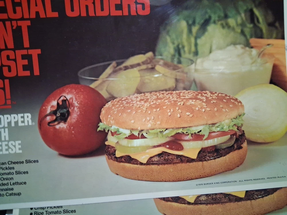 Type of Advertising: placemat Date of Creation: 1975 Color: Multi-color Brand: Burger King Country/Region of Manufacture: United States Theme: Restaurants & Fast Food Original/Reproduction: Original