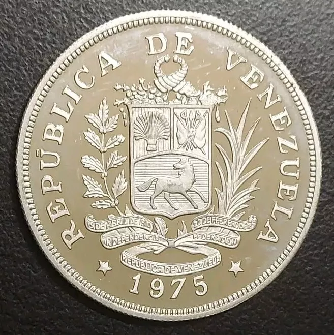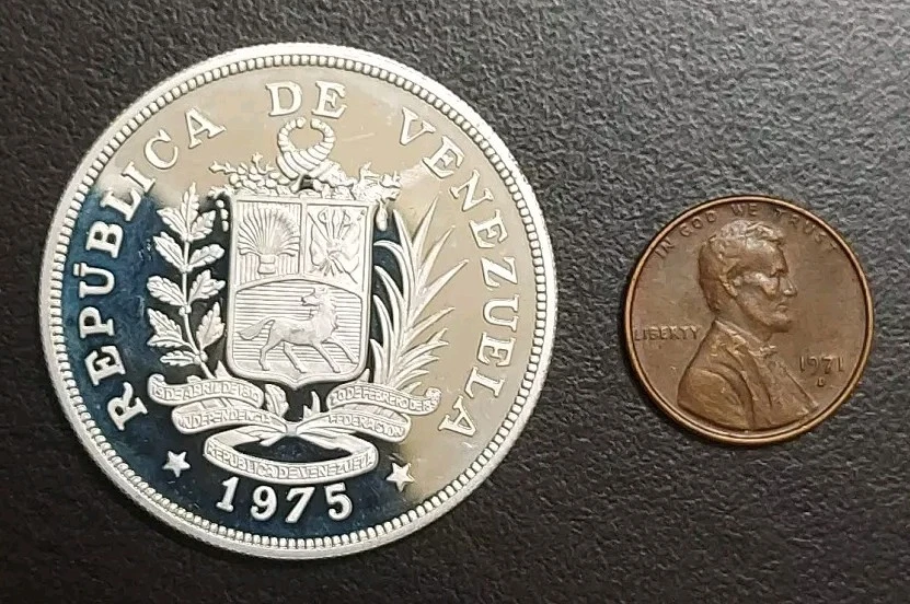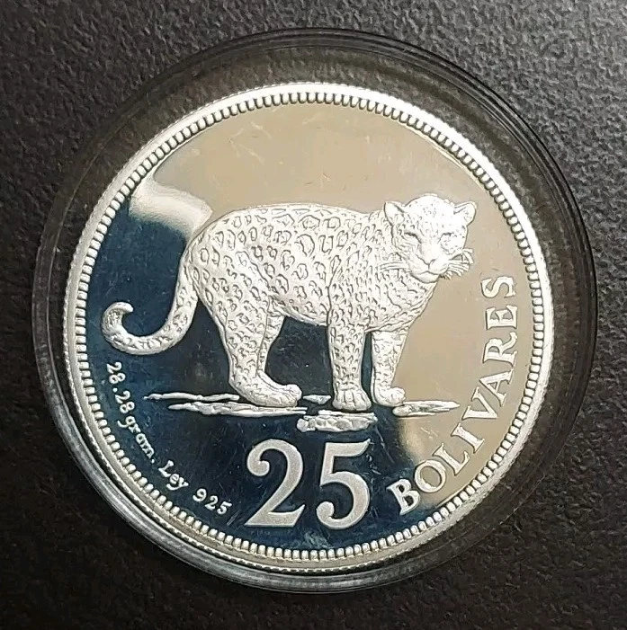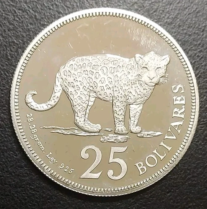 1975 VENEZUELA 25 BOLIVARES SILVER PROOF COIN JAGUAR LOW MINTAGE 8,000 WILDLIFE