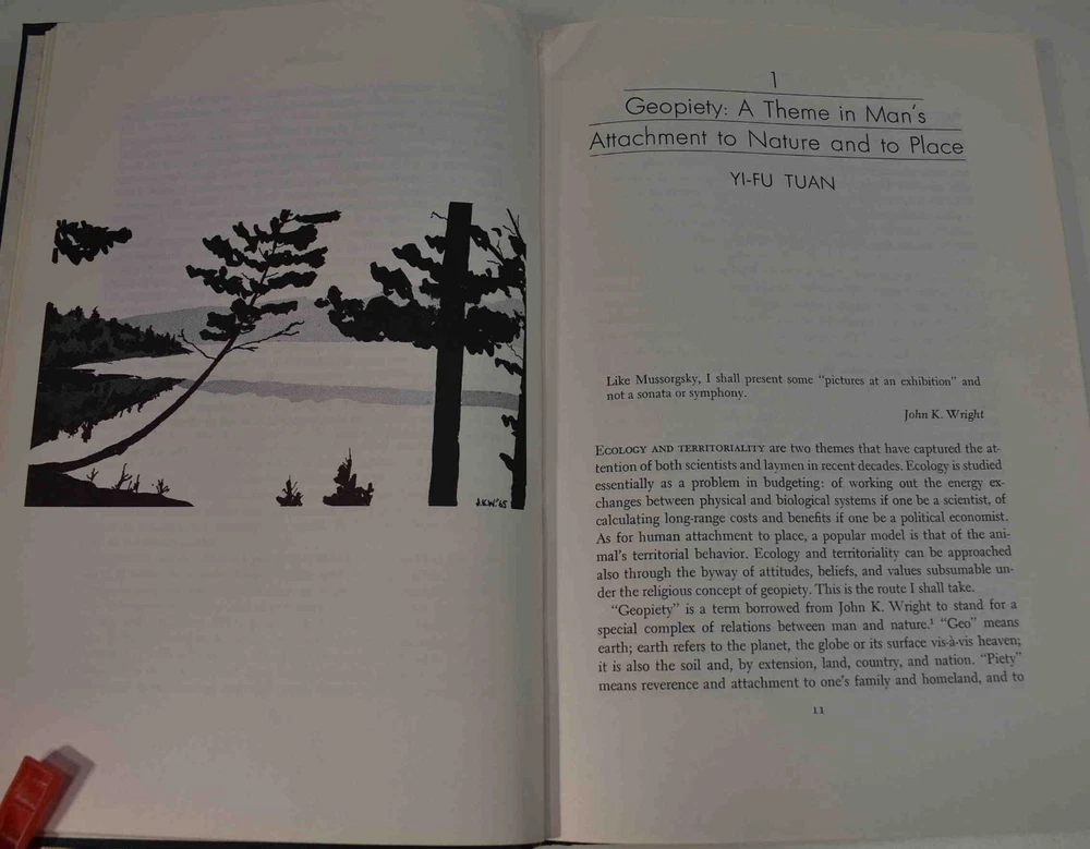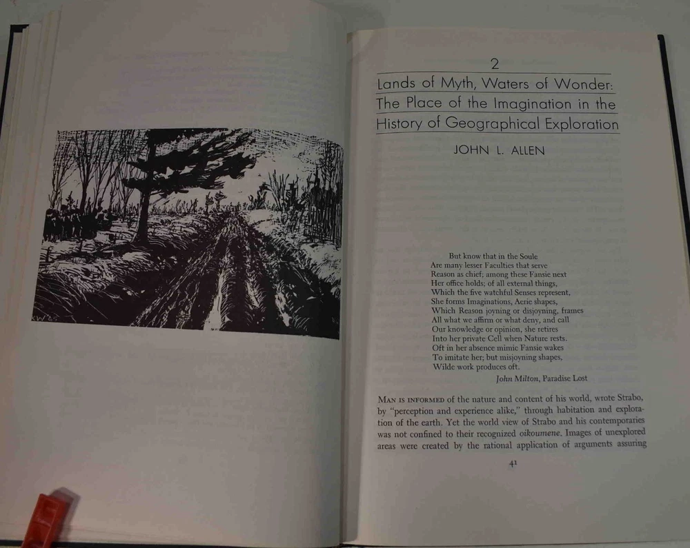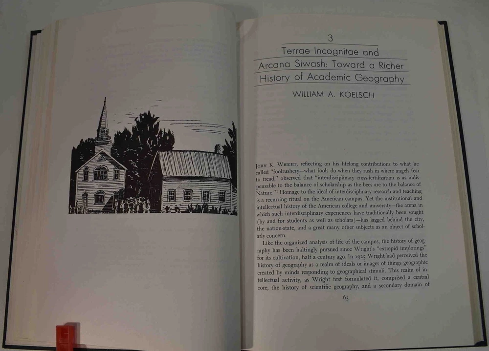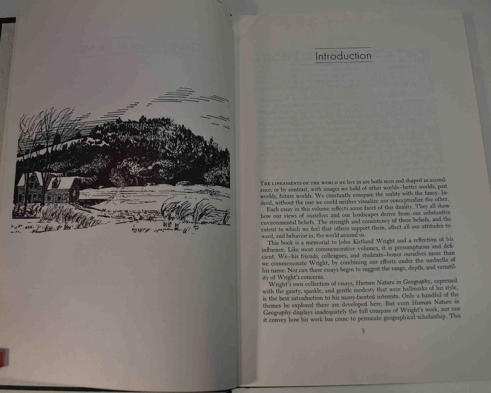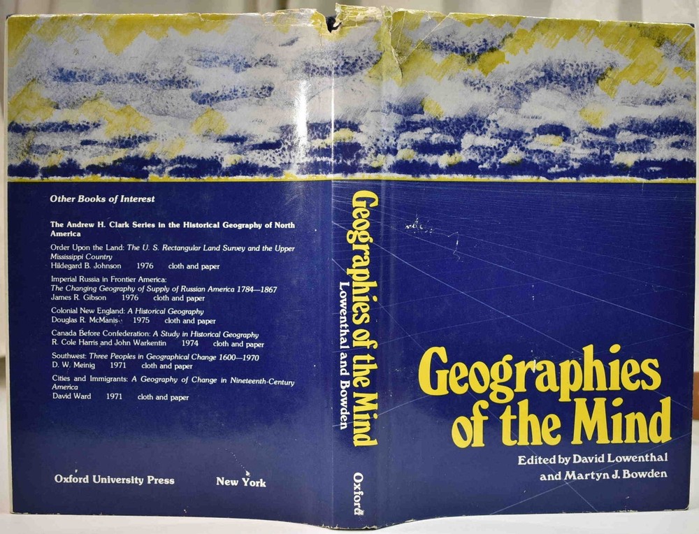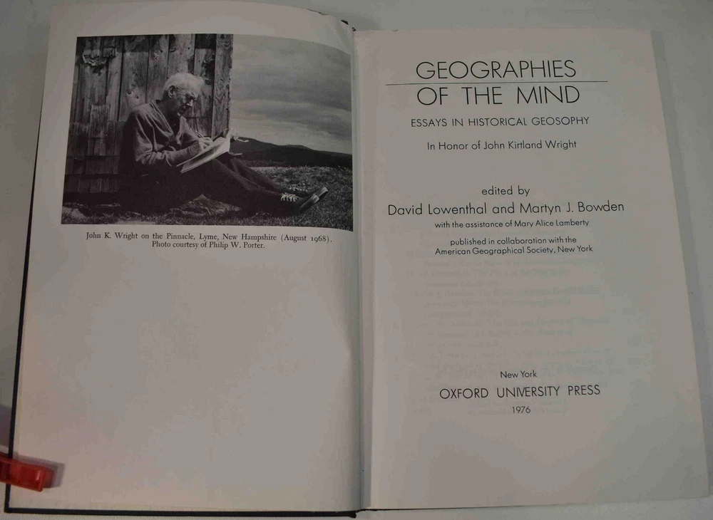 GEOGRAPHIES OF THE MIND ESSAYS IN HISTORICAL GEOSOPHY In Honor of John Kirkland Wright Edited by David Lowenthal and Martynb J. Bowden with the assistance of Mary Alice Lamberty. Published by Oxford University Press (in collaboration with the American Geographical Society), New York. Copyright 1975; there is no statement of printing, but the date 1976 is on the title page so it is likely a later printing. There is a black and white photo John Wright as a frontispiece and each chapter has an ink drawing at the head. From Wikipedia: John Kirtland Wright (1891–1969) was an American geographer, notable for his cartography, geosophy, and study of the history of geographical thought. He was the son of classical scholar John Henry Wright and novelist Mary Tappan Wright, and the brother of legal scholar and utopian novelist Austin Tappan Wright. He married Katharine McGiffert Jan. 21, 1921 in New York, N.Y. They had three children: Austin McGiffert Wright, Gertrude Huntington McPherson, and Mary Wolcott Toynbee. Having completed a PhD in history at Harvard University, in 1920 Wright was employed as librarian by the American Geographical Society; between the years of 1920 and 1956 he also served as an AGS editor, personal academic contributor, and eventually director. As a result of his prolific academic and professional life, three main themes have emerged in John K. Wright’s published works. These include: the overlapping of academic disciplines (mainly history) with geography, the power of the mind and the supernatural realm in creating subjectivity in geographic research, and the importance of sharing academic knowledge. DESCRIPTION: 263 pages 9 1/4 x 6 1/4 inches hardcover with dustjacket CONDITION: This hard-cover book is in good+ condition with a good dustjacket. The dark blue cloth hardcover is clean and shows only slight wear at the corners and spine ends. Something hit the top of the spine area fairly hard and there is some crushing evident there with small tears in the cloth of the top edge and along the top of the front joint. The interior is excellent with no names, marks, underlining, tears or odor. Despite the spine damage hinges and binding are intact and holding tightly with no loose or missing pages. The dustjacket is complete but has some chips and tearing in the top of the spine area. It is rubbed and worn at the edges and corners. From the dust jacket description: These eight essays on geographical ideas explore the impact of environmental beliefs on human thought and action, and ultimately on the environment itself. The themes range from devotion to sacred shrines in China to the renunciation of relics in America, from Coronado’s exploration of the Southwest to Harvard Students’ excursions in the White Mountains, from views of utopia to images of the afterworld, and from attitudes toward presumed aridity in the Great Plains to academic fashions int he study of historical geography. Relying on traces of human attitudes left in diaries and letters, scholarly texts and articles, novels, poems, and prayers, these essays by former students and colleagues of John Kirkland Wright reflect the influence of his pioneering work on how human nature has affected geographical understanding. BECAUSE MEDIA RATE SHIPPING IS FREE ON THE BOOKS I SELL, COMBINE THIS WITH OTHER ITEMS FROM MY EBAY STORE. I AM AN EXPERIENCED EBAY SELLER (23+ YEARS) AND SHIPPER WITH 100% (always!--since 1997!) FEEDBACK RATING. ALL ITEMS ARE CAREFULLY AND SECURELY PACKED TO REDUCE OR ELIMINATE DANGER OF CRUSHING AND OR WATER/MOISTURE DAMAGE. ALL BOOKS ARE SHIPPED IN STURDY BOXES WITH TRACKING AND DELIVERY CONFIRMATION INCLUDED. I PERSONALLY GUARANTEE ALL OF THE BOOKS, AUTOGRAPHS AND SIGNATURES ON BOOKS I SELL.