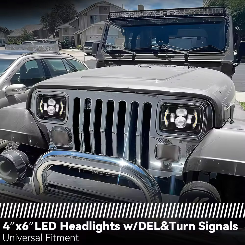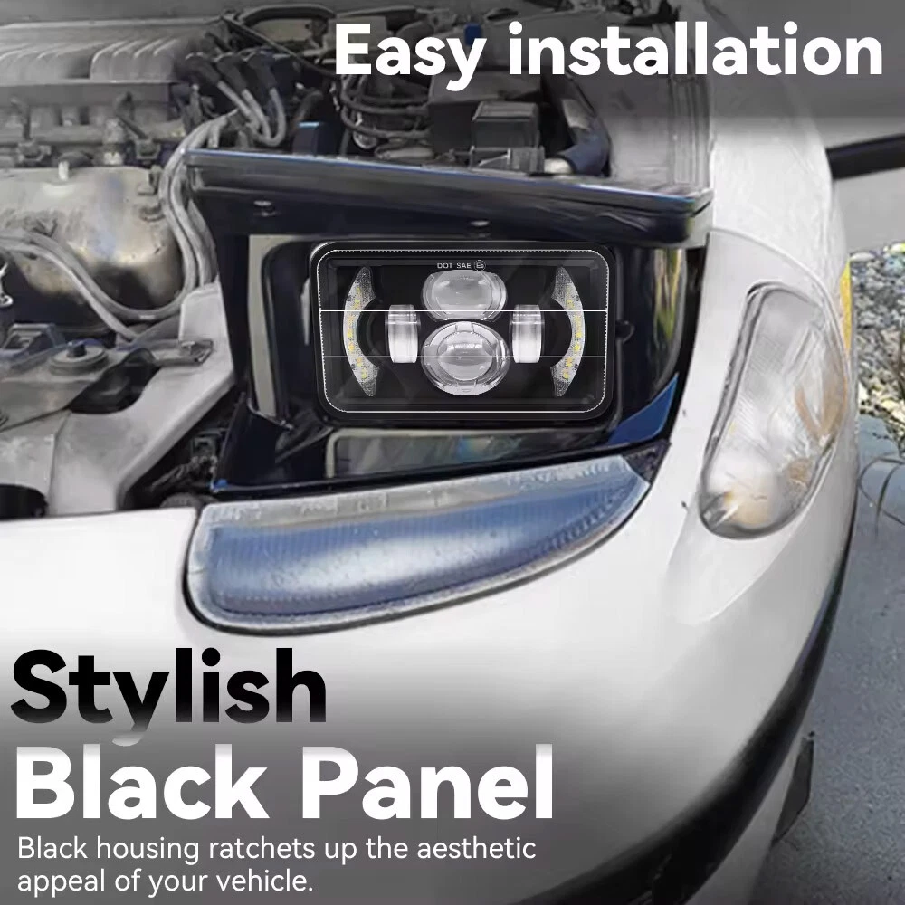 4x 4x6" LED Headlights For Chevy NOTE: When you Need the H4 Convert Wire Harness If The Original Headlamp Circuit With: Only One High or Low Beam Socket H4651,H4601 Sealed Beam Head Lights Different Pin-In Socket-Reverse Polarity H4656,H4652 Rectangular Headlights Non Standard H4 Shaped Socket H4666,H6545,H4668 Square Headlights The 3-Pin-out H4 Sockets Convert Wiring Harness(Buy Separately)Can Helps Well to Solve the Problem! Features: Each light has high beam, low beam, daytime running light. Easy installation: Plug and Play, the headlights are with standard 3-Pin plug (H4 plug). IP68 waterproof rate, special heat sink design Fit for efficient cooling dissipation. Note: If you suffer from problems, such as dim headlights, malfunctioning headlights, please buy H4 headlight relay and that will solve the problem. If PINs on your vehicle are not standard, please purchase H4 9003 wiring harness. Breathing Hole is designed to drive away moisture or water, contributing to longer lifespan above 80,000 hours, provide safe and stable light source Fit for your cars or trucks. Compatible with headlights: H4656/H4651/4651/4652/H4652/H4666/H6545. Description: Dimensions:4x6\\'\\' Power: 100W/pc Housing Color: Black Lens Color: Clear Lumen: 6000LM@high beam, 4800LM@low beam per light Beam Pattern: High & Low Beam + DRL+Amber turn signal; Light Color: White Working Temperature: -40~85 degrees Celsius Operating Voltage: 10-30V DC (fits 12V, 24V vehicles) Waterproof Rate: IP 68 Life Span: 80000Hours Material : Die-Cast Aluminum Alloy Housing with high heat disapation Lens Material: PC Color Temperature: 6000K Mounting Bracket: Alu firm bracket Certified by DOT SAE Warranty: 5 Year Warranty Package Included: 4PCS 4x6\\'\\' LED Headlights Fitment: Fits any car or truck that has 4x6 inch headlights,such as Fit for FREIGHTLINER FLD120 112 FLD Fit for Peterbilt Rectangular Headlights 379 378 357 Fit for Kenworth T800 T400 T600 W900B W900L Classic 120/132 HK Classic Fit for Chevrolet Camaro 1982 - 1992 Fit for Chevrolet Cavalier 1982 - 1987 Fit for Chevrolet El Camino 1982 - 1987 Fit for Chevrolet Monte Carlo 1980 - 1988 Fit for Ford Mustang 1979 -1986 Fit for Ford Probe 1993 -1997 Fit for Pontiac Firebird 1977 - 1981 Fit for Pontiac Grand Prix 1976 - 1987