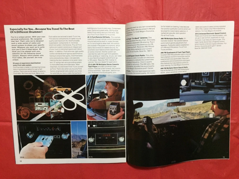 ITEM:::: This Listing is for an original 1979 FORD "TRUCK ACCESSORIES" Truck Dealer Sales Brochure... .... DIMENSIONS:::: About 10 3/4 by 9 inches and there are 16 pages with covers ...... CONDITION:::: The Condition is generally mostly VG..... Please refer to the pictures & e-mail for details). ......... ABREVIATIONS:::: E=Excellent with no issues..... VG = Very Good with very lite issues..... G/VG = Good to Very Good with lite issues..... G + = Good+ with lite to moderate issues..... G = Good with moderate issues..... G - = Good- with moderate+ issues..... F/G = Fair to Good with quite a few issues..... F = Fair with many issues..... P = Poor with lots of issues..... Please let the pictures help you decide condition because they are an integral part of the description! Please e-mail with questions...... I will combine shipping & you will only pay $3.98 for shipping no matter how many items you accumulate! You can take up to 30 days to accumulate Items for combined shipping. Please drop me a note after your 1st win letting me know that you intend to wait to pay so that you can take advantage of combined shipping...... I will ship your Package to the address that you have registered on EBAY---Ergo, I will ship to the address that is on the shipping label when I print it from EBAY---Please do not ask me to ship to any other address---I will not do it! My goal is 100% satisfaction! I will refund 100% of your costs if you are not satisfied! Thanks for visiting!