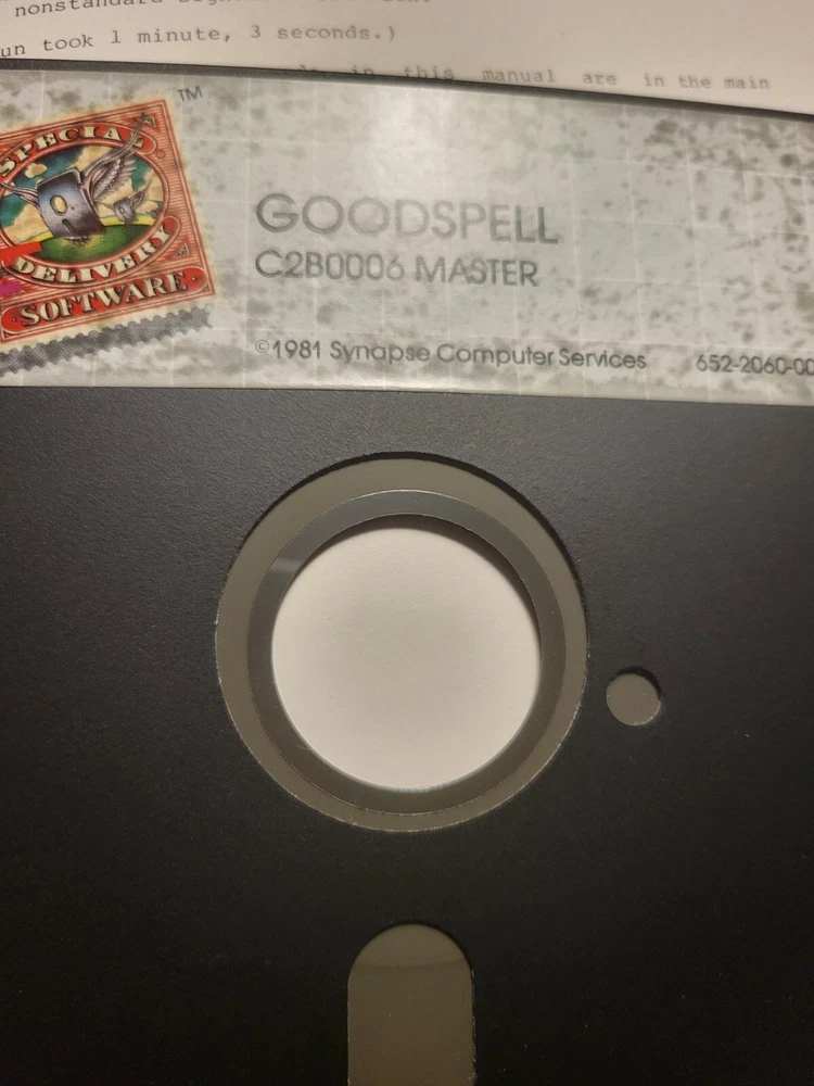 This vintage Apple II computer disk is a rare find for any collector or enthusiast. Made in 1981, it features the Synapse Goodspell C2B0006 software and is a 5.25 inch floppy disk.