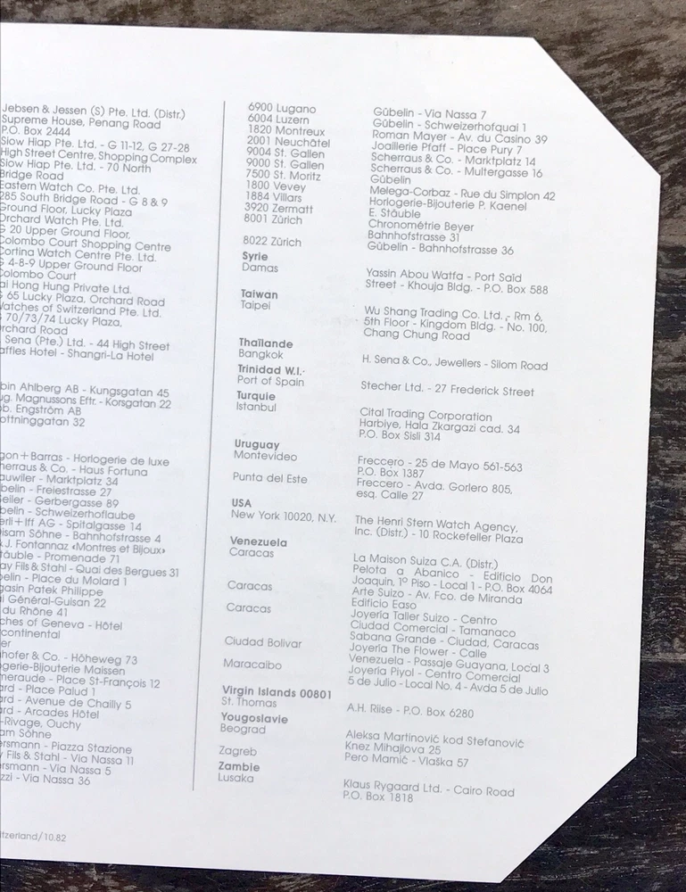 Patek Philippe Genuine Leaflet Vintage: 1982 Ref: 10.82 Measure: 25 x 17 cm THIS IS NOT A WATCH Private Collection ORIGINAL ---------------------------------- These products are being sold for Collection purposes ONLY. I am Member of WTA since 1998 I am not affiliated with Patek Philippe . I am not an official Patek Philippe Dealer Questions : Please ask us all the questions you have before bidding. ------------------------------------------------- We sell products that might have been used or otherwise known as "take-offs". Some parts are like new or very gently used, and others show signs of wear and may need to be cleaned or polished. Please see pictures for more details. We try to take pictures of any defects the item may have. If you have any additional questions, feel free to ask us and we will get back to you as soon as possible. Customer Service If for any reason you have an issue with our product, please choose “Contact Seller” via eBay before leaving negative feedback or opening a case. We promise to resolve any issues as soon as possible. Positive feedback and 5-star seller ratings are extremely important to us as we are looking to provide outstanding products and services to our customers. Returns We reserve the right to charge a 10% restocking fee on all returns. Shipping and handling charges are not refundable. The buyer is responsible for the return shipping fee. Shipping We typically ship orders Monday through Friday (except for Holidays) within 3 business days of receipt of cleared payment. Please make sure your shipping address is correct before sending payment. All orders are shipped with a tracking number. You will receive and email with it as soon as your order ships. Please allow a few extra days for delivery if there is a weather problem. IMPORTANT NOTE FOR INTERNATIONAL BUYERS All our goods are shipped from Spain, but we are a UK based eBay shop, sales to the European community might be subject to VAT. Please see the link below: VAT on eBay purchases for EU buyers | eBay.com BUYERS OUTSIDE THE EUROPEAN UNION: The tariffs, duties and import taxes are not included in item price or shipping charges. These charges are the responsibility of the buyer. Refer to the customs authorities of your country to inquire about these costs before bidding on an item or buying it. These fees are usually charged by the carrier or when the buyer takes the item and should not be confused with additional shipping costs.