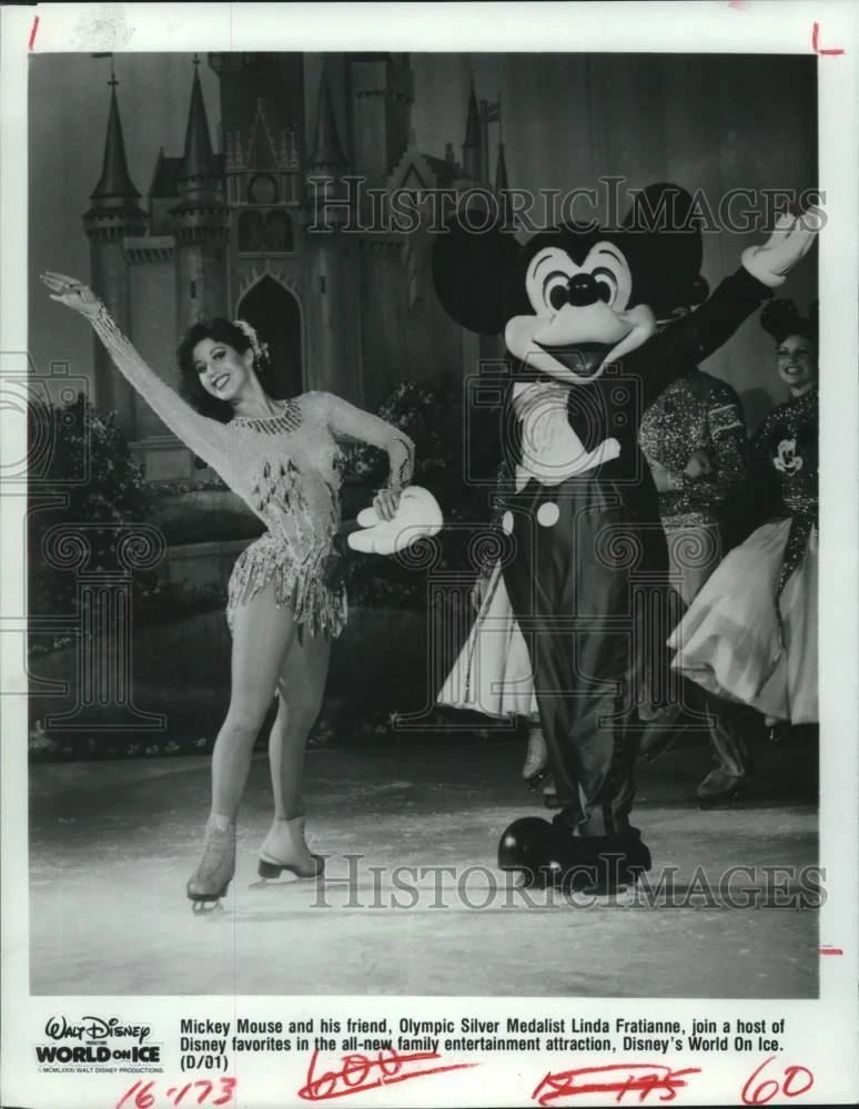 1983 Press Photo Olympic Medalist Linda Fratianne and Mickey Mouse, World On Ice