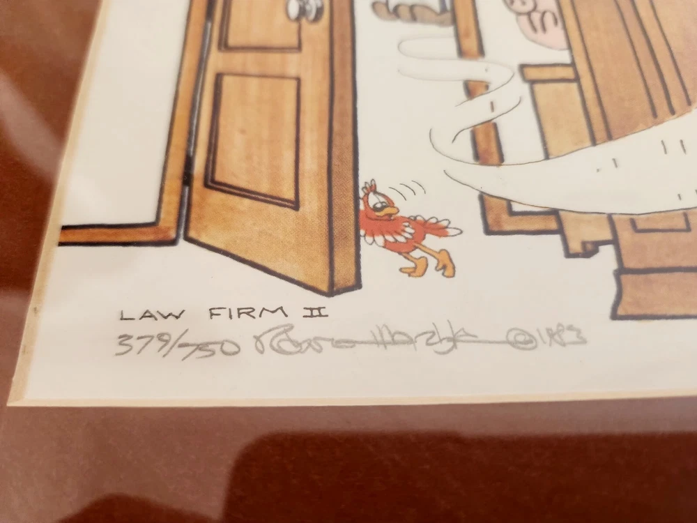 1983 Robert Marble "Law Firm II" Signed Framed Lithograph w/ COA. 38"x10"