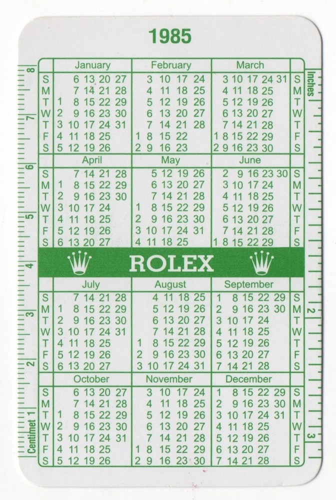 Rolex Genuine Calendar Vintage GREEN VERSION VERY RARE Please Note: THIS IS NOT A WATCH Items might differ slightly from the photos due to storage / handling Measure: 9,5 x 6,5 cm Private Collection ORIGINAL ---------------------------------------------- These products are being sold for Collection purposes ONLY. I am Member of WTA since 1998 I am not affiliated with Rolex . I am not an official Rolex Dealer Questions : Please ask us all the questions you have before bidding. ------------------------------------------------- We sell products that might have been used or otherwise known as "take-offs". Some parts are like new or very gently used, and others show signs of wear and may need to be cleaned or polished. Please see pictures for more details. We try to take pictures of any defects the item may have. If you have any additional questions, feel free to ask us and we will get back to you as soon as possible. Customer Service If for any reason you have an issue with our product, please choose “Contact Seller” via eBay before leaving negative feedback or opening a case. We promise to resolve any issues as soon as possible. Positive feedback and 5-star seller ratings are extremely important to us as we are looking to provide outstanding products and services to our customers. Returns We reserve the right to charge a 10% restocking fee on all returns. Shipping and handling charges are not refundable. The buyer is responsible for the return shipping fee. Shipping We typically ship orders Monday through Friday (except for Holidays) within 3 business days of receipt of cleared payment. Please make sure your shipping address is correct before sending payment. All orders are shipped with a tracking number. You will receive and email with it as soon as your order ships. Please allow a few extra days for delivery if there is a weather problem. IMPORTANT NOTE FOR INTERNATIONAL BUYERS All our goods are shipped from Spain, but we are a UK based eBay shop, sales to the European community might be subject to VAT. Please see the link below: VAT on eBay purchases for EU buyers | eBay.com BUYERS OUTSIDE THE EUROPEAN UNION: The tariffs, duties and import taxes are not included in item price or shipping charges. These charges are the responsibility of the buyer. Refer to the customs authorities of your country to inquire about these costs before bidding on an item or buying it. These fees are usually charged by the carrier or when the buyer takes the item and should not be confused with additional shipping costs.