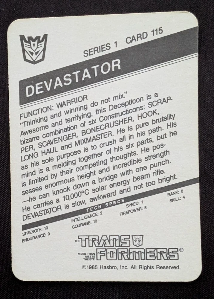 1985 HASBRO TRANSFORMERS SERIES 1 #115 DEVASTATOR *ROOKIE* NM/MINT+ *$1 AUCTION*