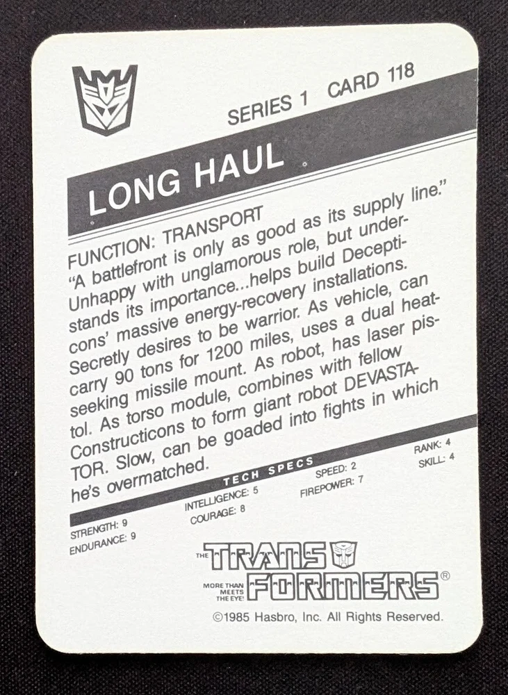 1985 HASBRO TRANSFORMERS SERIES 1 #118 LONG HAUL *ROOKIE* MINT+ *$1 AUCTION*
