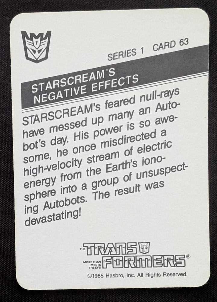 1985 HASBRO TRANSFORMERS SERIES 1 #63 STARSCREAM'S EFFECTS MINT+ *$1 AUCTION*