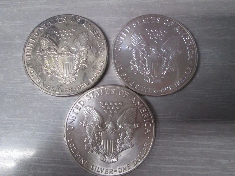 1986 American Eagle Uncirculated .999 Fine Silver 1 Ounce Dollar Coins- Lot of 3 Please look at all photo's for actual picture UNITED STATES SHIPPING We offer combined shipping on multiple orders. In this event, please wait to receive a combined invoice before completing payment. You may notify us via eBay message of your continued bidding to help us best assist you. We give up to 10 Days from first items ending date for combined orders, or an unpaid case will open. Once a payment is made no other orders can be combined with that order. We use the USPS shipping service through EBay so you can track your package right online. You will receive your tracking number via messages. We do offer LOCAL PICK UP INTERNATIONAL SHIPPING Please review the eBay Global Shipping Program before bidding. These orders will be subject to domestic shipping charges along with any taxes, tariffs or customs charges from the destination country. If you are not 100% satisfied with your item you may return within 30 days of received date. We do our best to present accurate information about every item we sell. If you have any questions please feel free to ask through message. WE APPRECIATE YOUR BUSINESS AND THANK YOU FOR VIEWING OUR LISTING!
