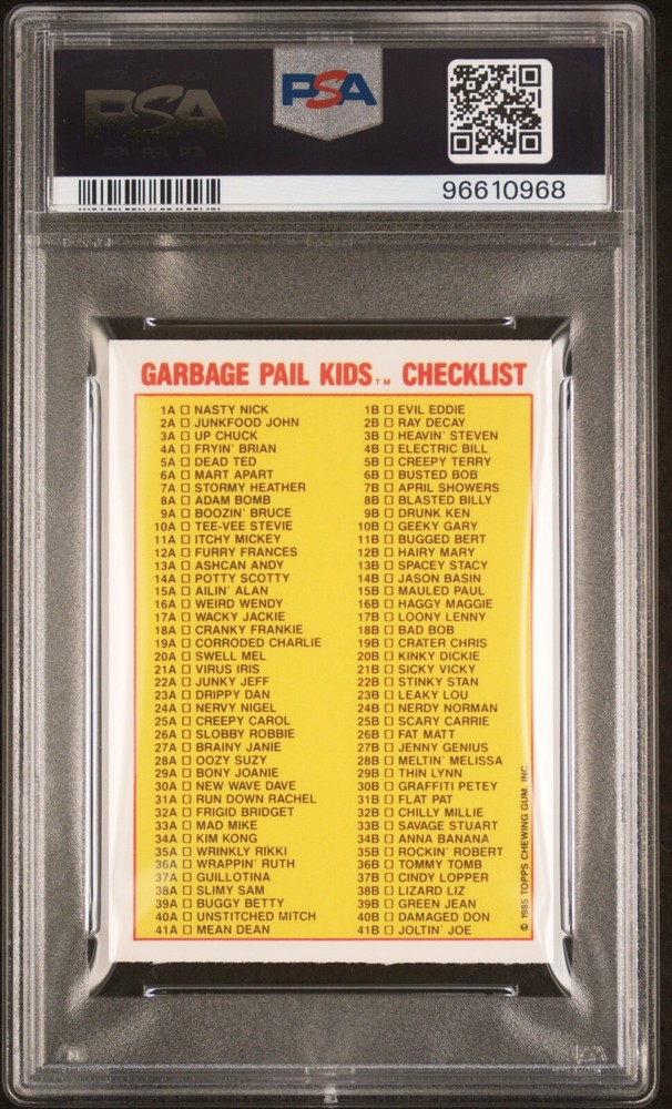 Card: Blasted Billy Card #: 8b Type: PSA Graded Grade: PSA 9 Mint Population: 38 Release Year: 1986 Series Release: Original Series 1 UK Minis Condition: Professionally graded as PSA 9 Mint condition. Photos show the actual card you will receive. Special Notes: Comes with slab sleeve. Checklist back