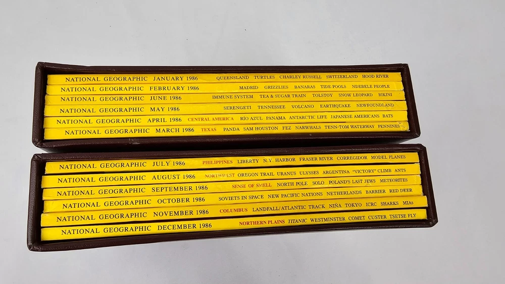 Available for sale in this lot is a National Geographic Magazine Complete Set & Slipcovers for 1986 (January-December). This includes all 12 magazines and all are in mostly good condition and include original maps. Please check the photos. Payment: PayPal or eBay Payments. Shipping: We ship using USPS Ground Advantage or UPS ground.