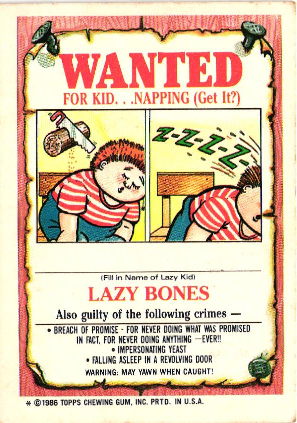 1986 Topps Garbage Pail Kids Sticker Card 103B Curly Carla