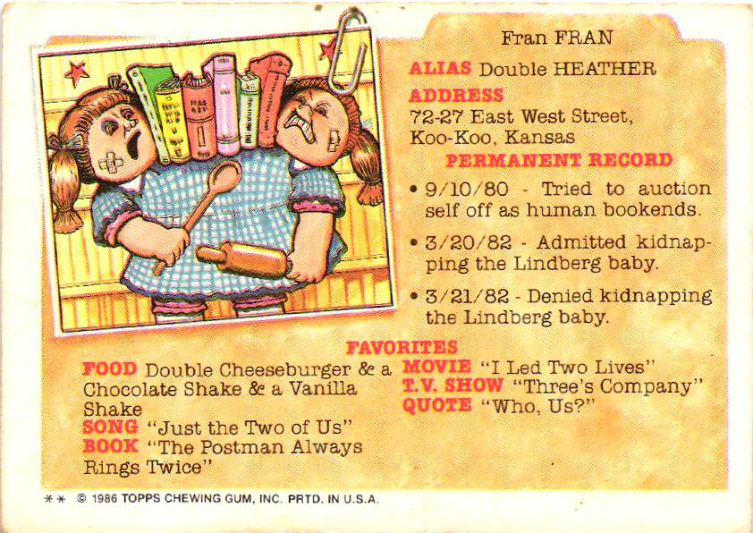 1986 Topps Garbage Pail Kids #225A Nasal Hazel Sticker Card