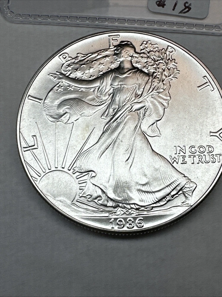 Composition: Silver Coin: American Eagle Brand/Mint: U.S. Mint Total Precious Metal Content: 1oz Grade: Ungraded Country/Region of Manufacture: United States Precious Metal Content per Unit: 1 oz Strike Type: Business Year: 1986 Certification: Uncertified Fineness: 0.999