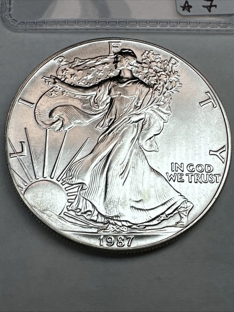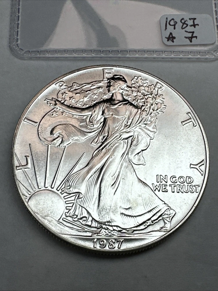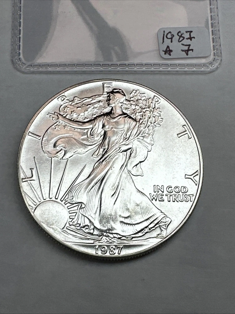 This 1987 American Silver Eagle is a highly sought-after coin for collectors and investors alike. It features a beautiful design and is made of pure silver with a fineness of 0.999. The coin is ungraded and uncertified, making it a great addition to any collection or investment portfolio. The Silver Eagle is a product of the U.S. Mint and is the second year of its production. This one-ounce coin has a precious metal content of 1oz and bears the image of Lady Liberty on one side and the American eagle on the other. Don't miss your chance to own a piece of American history with this classic coin.