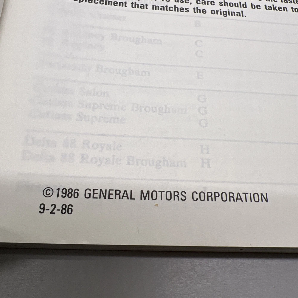1987 General Motors Body Service Manual Oldsmobile Buick Cadillac Passenger Cars
