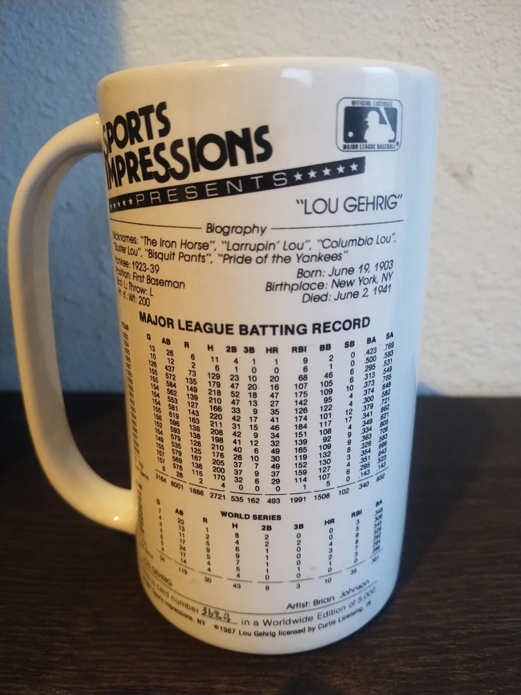 Lou Gehrig collectible mug. Limited edition #3624 OF 5000, never used.