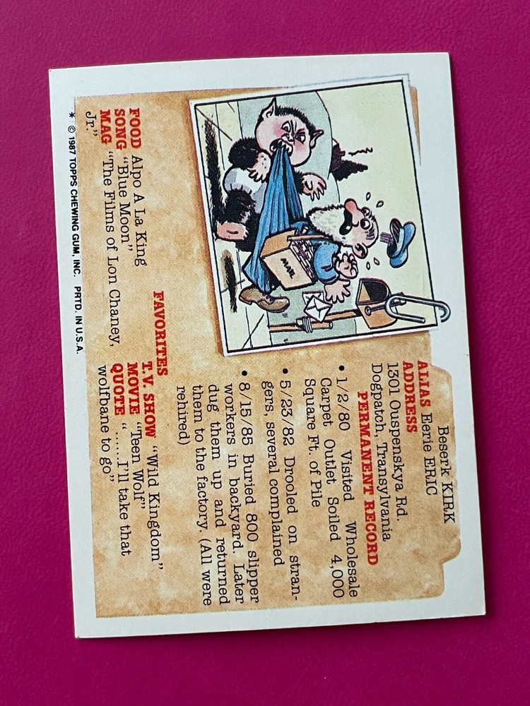 Card: Vanessa Undresser Card #: 276a Type: Green Line-Splotch ERROR Release Year: 1987 Series Release: Original Series 7 Special Notes: Newly discovered error where there is a printing line-splotch error that is green just above the "D" in the "Kids" header. It has been confirmed with other collectors circa 2021. I have pictured other 276a errors that I have found. Condition: This card is in Near Mint condition! Photos show the actual card you will receive