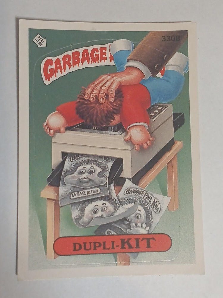 This 1987 Topps Garbage Pail Kids GPK Series 8 OS8 2-Star Dupli KIT 330b NM trading card is a must-have for any collector. Featuring the iconic characters from the Garbage Pail Kids franchise, this original, English-language card is a vintage piece that is sure to bring a smile to any fan's face. The card is in standard size and features both a base set and a sticker. The card is part of the Garbage Pail Kids - Series 8 set and was manufactured in the United States by Topps. It is a non-sport trading card that is perfect for fans of parody and comedy. Whether you're a fan of the Garbage Pail Kids movie or TV show, this card is a great addition to any collection. Don't miss out on the chance to own this unique piece of pop culture history.