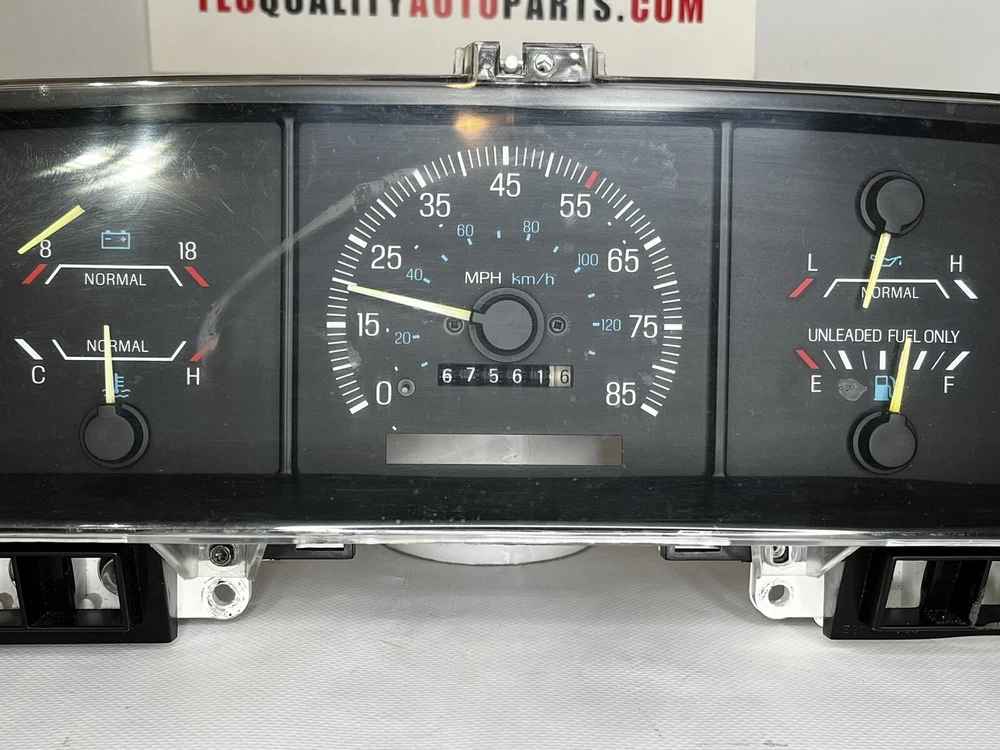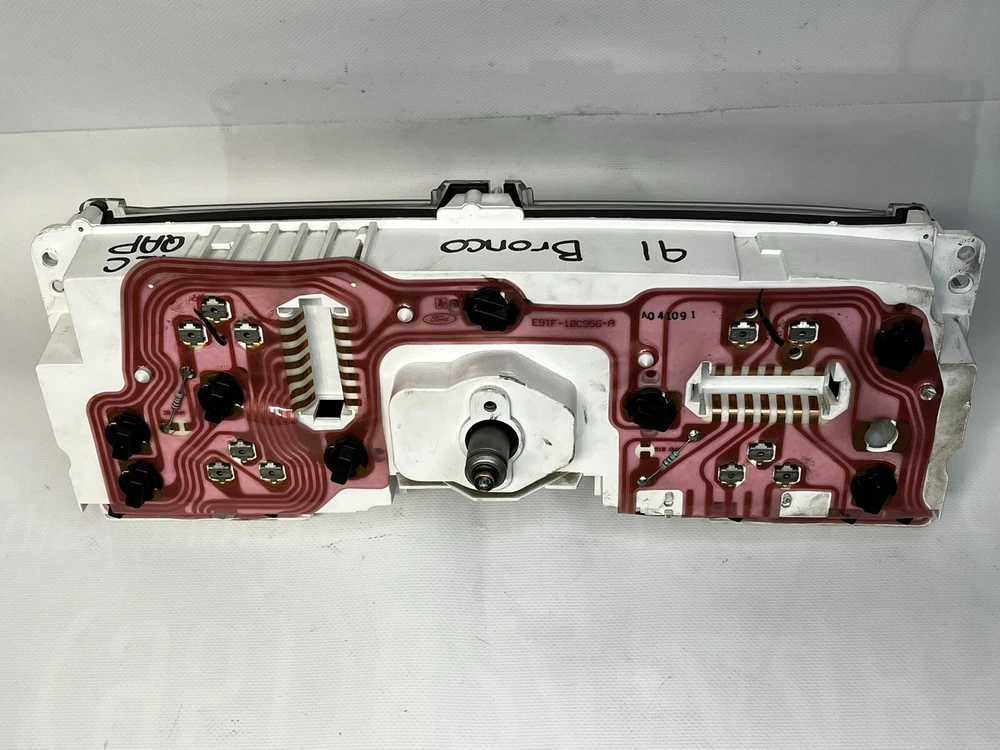 *Speedometer is not working, cluster is sold for parts only!* Welcome to TLC Quality Auto Parts Here is an instrument cluster in decent condition while showing normal wear; see all photos for exact condition. Please read below for fitment and compatibility. Fitment is buyer’s responsibility. Additional notes: Lens has many scratches and stains, see photos! Speedometer is not working Donor Vehicle Year: 1991 Make: Ford Model: Bronco Mileage (5-digit): 67,561.6 miles Fitment & Compatibility 1987-1991 F-150, F-250, F-350, F-450 (F-Super Duty), and Bronco Shipping, Warranty, & Returns All items are shipped within two business days of receiving cleared payment. Worldwide shipping! 30-day money back warranty beginning when buyer receives item. Warranty ONLY covers parts, no labor. Please contact before starting a return or leaving negative feedback. If you are happy with your purchase, please leave a positive feedback; it means a lot! Thank you for shopping with TLC Quality Auto Parts!