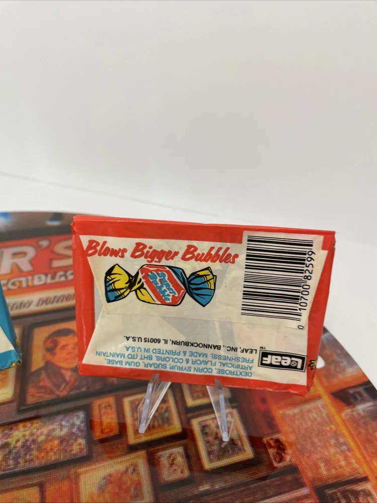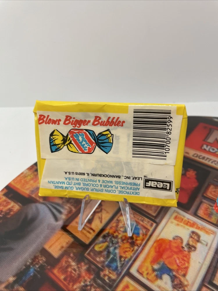Step into a world of nostalgia with these 1988 Vintage Awesome All Stars Leaf Trading Cards. Each pack is a slice of Americana, wrapped in card stock and tied with a bow of vintage charm. You’ll find the standard-sized cards, unopened and preserved in time, eager to complete your collection. With a set of three packs, you're guaranteed to find at least one gem from the Awesome All Stars series. These first edition stickers from Leaf are not just collectibles but a piece of history. Produced in the United States, they capture the essence of action, parody, and comedy that was popular in the late '80s. They remain in English, unautographed, and full of the quirky humor that made them a hit back then. Add them to your collection and own a piece of the Awesome All Stars legacy.