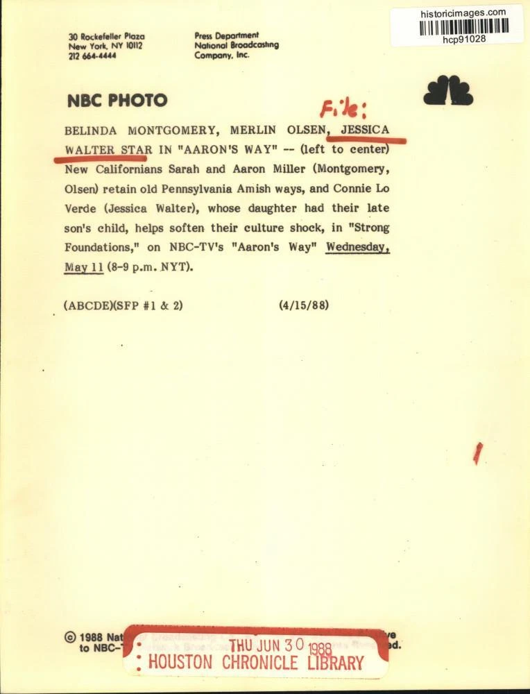 ebay template Note: Please study the images carefully to determine the condition of this vintage photograph, as it may not be in perfect condition. It may contain wrinkles, cracks, and possibly even tears due to its age and how it was handled before it got to us. A scanner may interpret colors and contrast differently than human eyes will, so it is possible that the actual photograph may be slightly darker or lighter in person. This vintage photograph is offered for sale as a collectible item and conveys no transfer of copyright. 1988 Press Photo "Aaron's Way" NBC Series Cast Members - hcp91028 This is an original press photo. (left to center) New Californians Sarah and Aaron Miller (Montgomery, Olsen) retain old Pennsylvania Amish ways, and Connie Lo Verde (Jessica Walter), whose daughter had their late son's child, helps soften their culture shock, in "Strong Foundations," on NBC-TV's "Aaron's Way" Wednesday, May 11 (8-9 p.m. NYT).Photo measures 7 x 9inches. Photo is dated 04-15-1988. PHOTO FRONT PHOTO BACK Historic Images Part Number: hcp91028 FAQs Q: Can I just download a digital version instead? A: No, we sell only vintage originals and do not make or distribute any copies, including digital ones. Q: Do you combine shipping and invoices? A: Multiple photos won on the same seller ID combine automatically through the eBay checkout process. If you encounter problems with this, send us a message via eBay messaging and we will send you an invoice. Due to eBay limitations, we cannot combine items won on our different seller IDs for a single shipping charge. Q: How quickly do you ship the items once paid? A: We ship within one business day after your payment clears. If you do not receive an "order shipped" email from us by the close of the second business day from submitting payment, please e-mail us via eBay messaging. Q: How do you make sure my photograph arrives safely? A: We package each order between two cross-corrugated pieces of cardboard to ensure that the package is as difficult to bend as possible. We then wrap each order in a plastic sheet to help protect against moisture. We want you to rest assured that we take every precaution to ensure that the photograph you receive will be in the same condition in your care as it was in ours. Q: Will the "Historic Images" watermark be on my photo when I receive it? A: No. This is a digital watermark we use to protect our images. It is not printed on the photo. Q: What are your office hours? A: eBay for us is a business, and a very fun one to be in! We are open M-F 9 to 5 (CST). Therefore, we do not return e-mails and phone calls over the weekend. We observe the following holidays: New Years Day, Memorial Day, Fourth of July, Labor Day, Thanksgiving and the day after Thanksgiving, Christmas Eve and Christmas Day. Q: Where did all these vintage photos come from? A: These original vintage photographs are from various news service and newspaper photo archives from locations around the country including: Boston, Detroit, Tampa, Chicago, Denver, Seattle, New Orleans, Milwaukee, Portland, Spokane, and more. We do not copy or reproduce any photographs -- every item is a unique vintage piece that was housed in a news archive. Q: Can I use this photograph in my book/blog/website? A: The short answer is no. There is no transfer of copyright for republication or reproduction with these photographs when you purchase them, and only photographs taken before 1923 are currently automatically in the public domain. Permission from the copyright holder, which usually can be identified from the back of each photo, must be sought to republish or reproduce the image for any purpose. Q: Do you relist items (in case I miss an auction ending)? A: Auction items that receive no bids are relisted in our store (historicimages-store on eBay) as a fixed-price item and at a higher price than the starting auction price. Q: Do you leave feedback? A: Yes, we always leave feedback for buyers. Our software monitors when our buyers leave us feedback, then notifies us that we can leave feedback for the buyer. Rest assured, if you leave feedback, we will do the same! Check out our family of eBay IDs: historicimages01 Sports Photos historicimages02 Entertainment Photos historicimages03 Americana Photos historicimages04 International & War Photos historicimages05 Transportation Photos historicimages06 Photos of All Subjects historicimages07 Entertainment Photos historicimages08 Newsworthy Photos historicimages09 Entertainment Photos historicimages10 Sports Photos historicimages-store Our largest fixed-price selection historicimages-gallery Hand-picked photos Saturday night auctions About Us Historic Images was formed in September 2009, with a handful of scanners working out of a basement to digitize newspaper photo archives. We have since moved out of the basement, and we can now archive thousands of photos per day. Our company has worked with magazines and newspapers from Detroit, Boston, Denver, Seattle, Tampa, Chicago, and New Orleans, just to name a few. We are constantly adding to our inventory, and have assembled an archive of millions of photos to date. As our company evolved, we began our eBay business, which brings thousands of fresh auctions per week to the world's largest online auction marketplace. Our custom software systems and team of great employees allow us to efficiently scan and sell large photo archives online. At the very core of our company's DNA is a strong commitment to customer satisfaction and strict integrity for our product. Our promise to you is that we will do everything in our power to provide you a great buying experience. Copyright 2009 - Present, Historic Images, Inc. Sell Smarter with Kyozou. Inventory and Ecommerce Management
