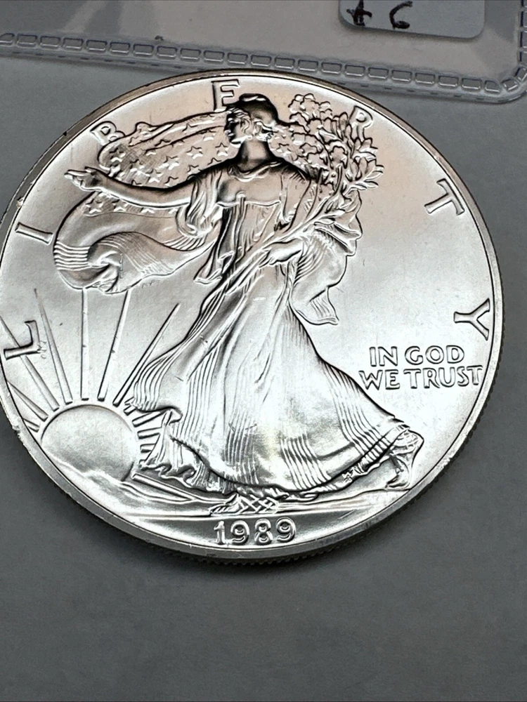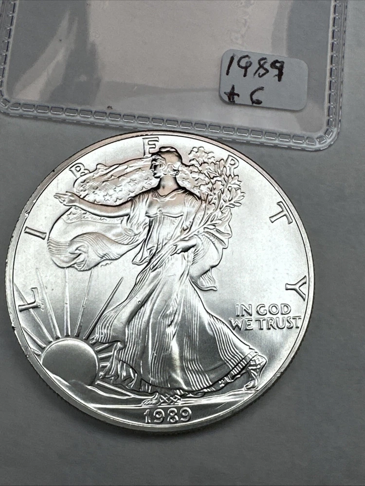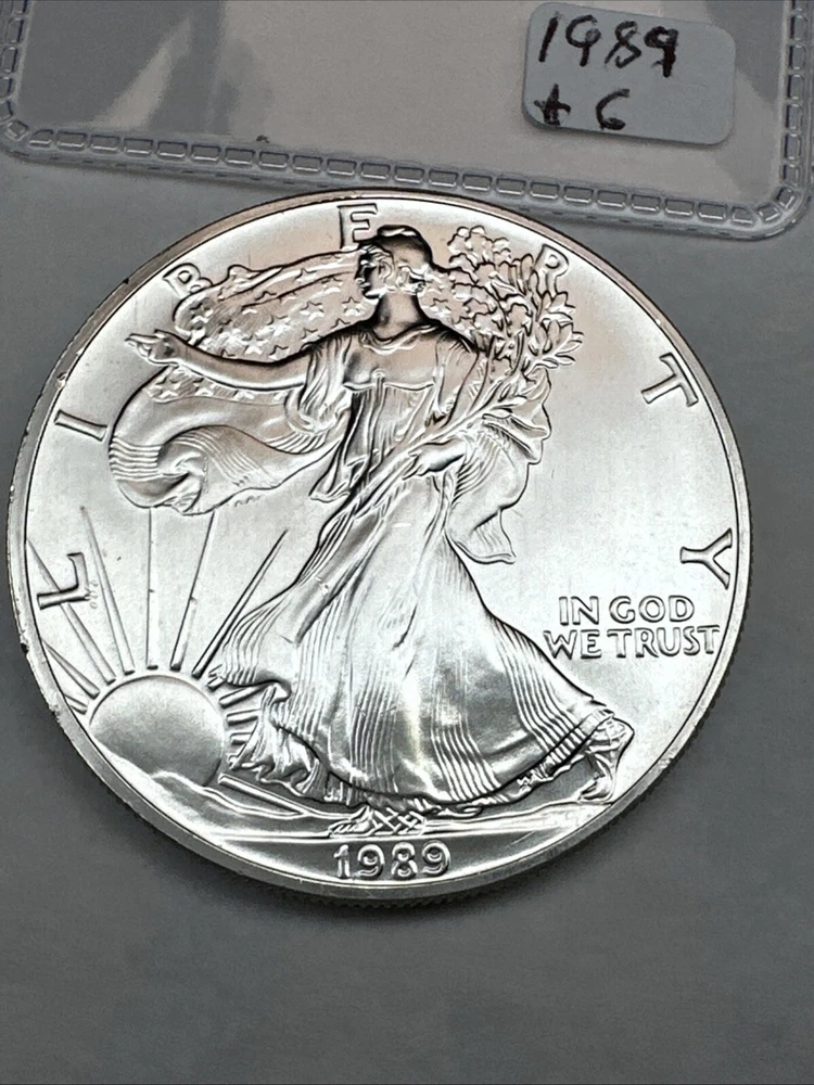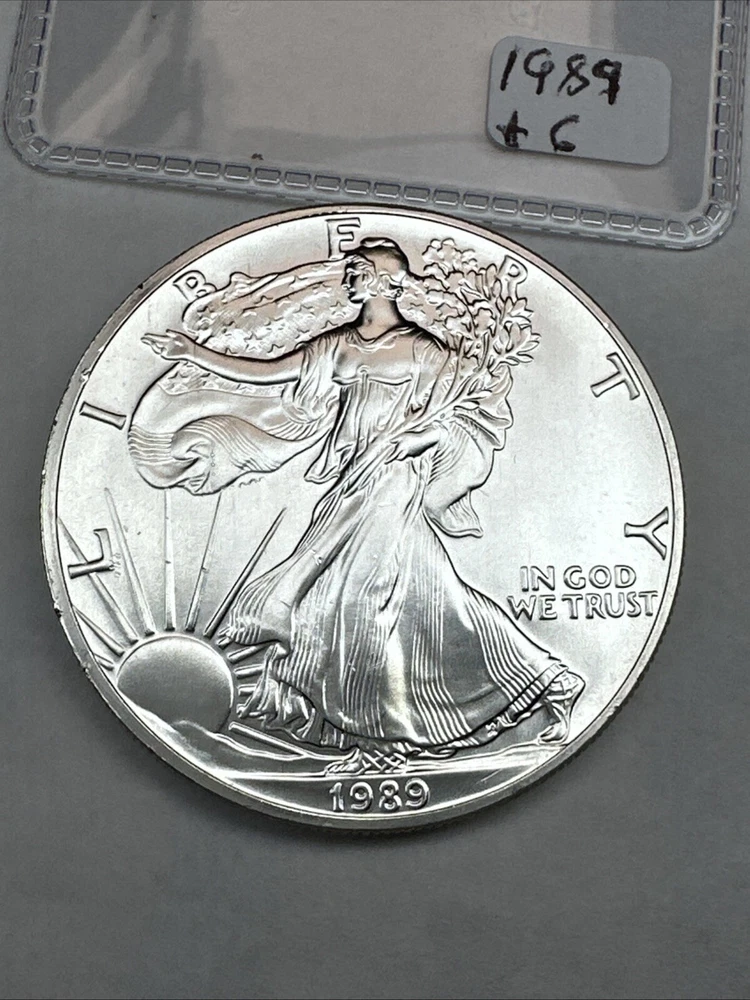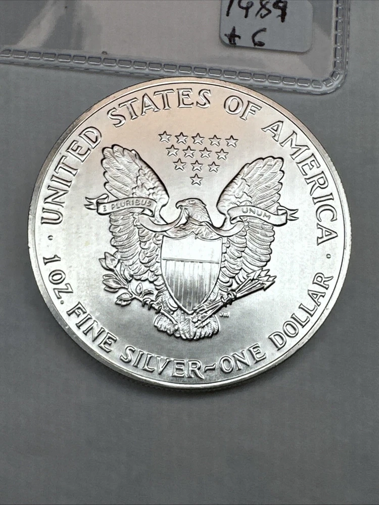 Composition: Silver Country/Region of Manufacture: United States Coin: American Eagle Brand/Mint: U.S. Mint Total Precious Metal Content: 1oz Year: 1989 Fineness: 0.999 Grade: Ungraded Strike Type: Business Certification: Uncertified Precious Metal Content per Unit: 1 oz Brand: Silver Eagle