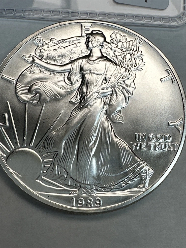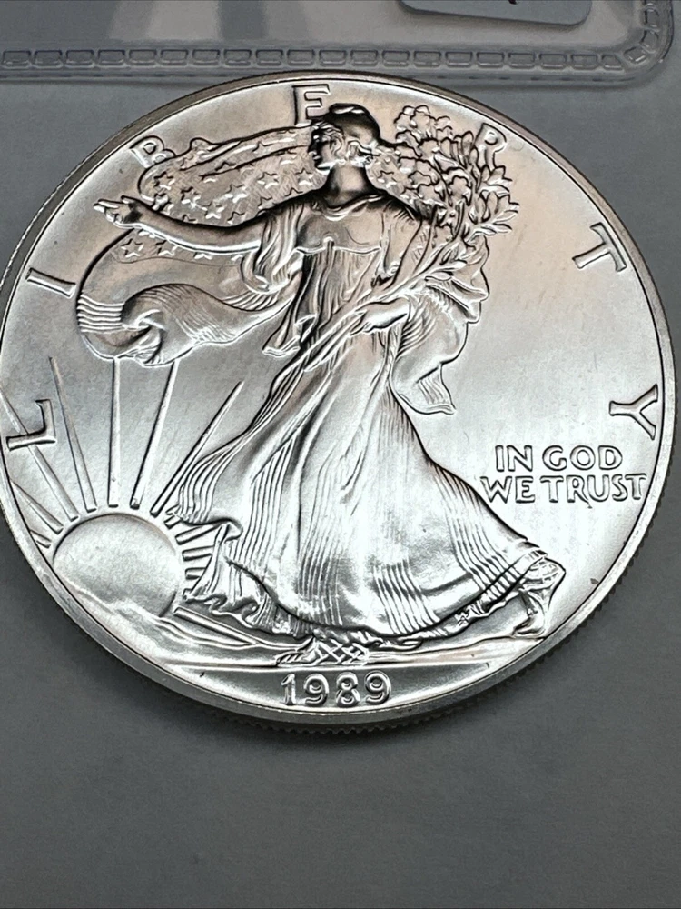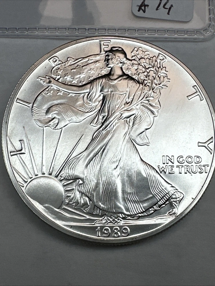 Grade: Ungraded Strike Type: Business Brand: Silver Eagle Composition: Silver Country/Region of Manufacture: United States Coin: American Eagle Precious Metal Content per Unit: 1 oz Year: 1989 Total Precious Metal Content: 1oz Certification: Uncertified Brand/Mint: U.S. Mint Fineness: 0.999