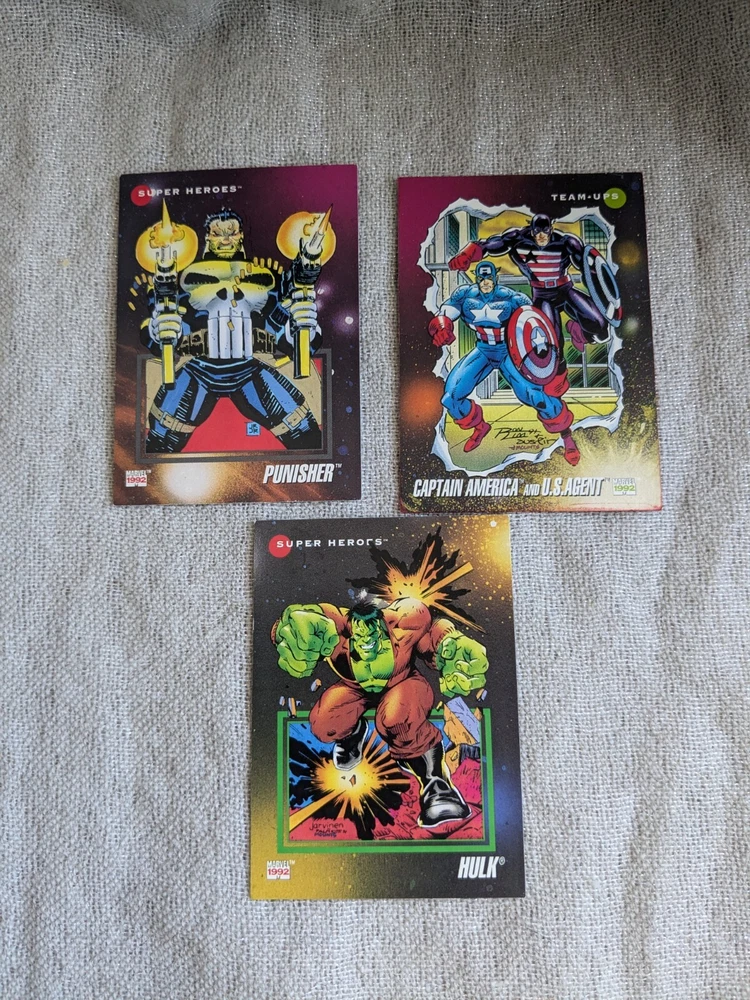 Two comics : Dr Strange Sorcerer Supreme #1 1988 and Dr Strange Sorcerer Supreme 1989 vol 12. And Three vintage Marvel trading cards: Hulk, The Punisher and Captain America. If you want something separate, let me know, I can make a new different listing, if not, these all come in a bundle together.