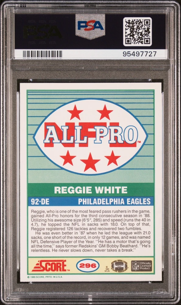 1989 Score #296 Reggie White PSA 10 HOF Eagles Packers