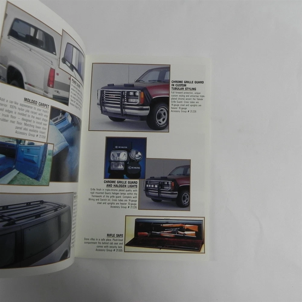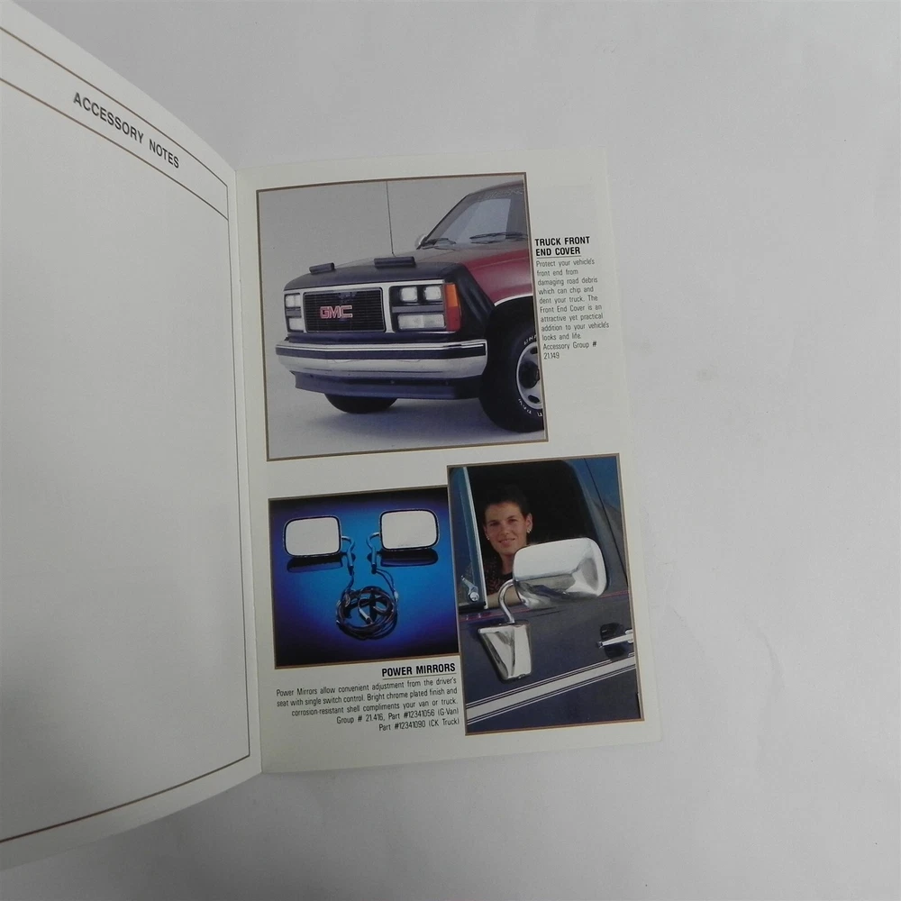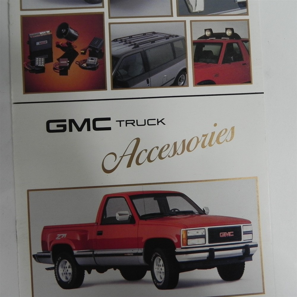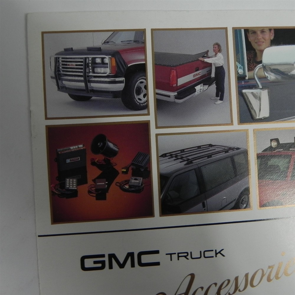 VINTAGE 1990S GMC TRUCK ACCESSORIES DEALERSHIP SALES BROCHURE SPECIFICATIONS INFORMATION GOOD CONDITION NO TEARS See photos below for details. Contents included will be pictured. ABOUT US Jones Vintage Parts has been a family-owned business for over 40 years. We specialize in rare and vintage NOS and used parts for all makes and models from the teens to the 70s. We're passionate about uncovering and restoring the stories of the treasures from your grandparents and great grandparents history. We believe in breathing new life into the world's first modes of transportation. New vintage all the time! SHIPPING INFORMATION Purchased items will generally ship Monday through Friday, within 3 days via USPS Flat Rate or First Class upon payment receipt. Larger items will be shipped via FedEx Ground or UPS. Multiple same-day purchases will be combined for discounted shipping (request a revised invoice to receive bulk shipping discount or notify us of future purchases). International shipping also available. RETURN POLICY Our goal is your satisfaction. If you are unhappy with your order for any reason items may be returned for parts credit within three (3) days of receipt, and you will be charged a 10% restocking fee. There are no shipping refunds. Exchanges will be billed appropriate freight. All return items must be complete, undamaged, unaltered and in resale condition. You may be interested in our other eBay listings . Powered by SixBit's eCommerce Solution