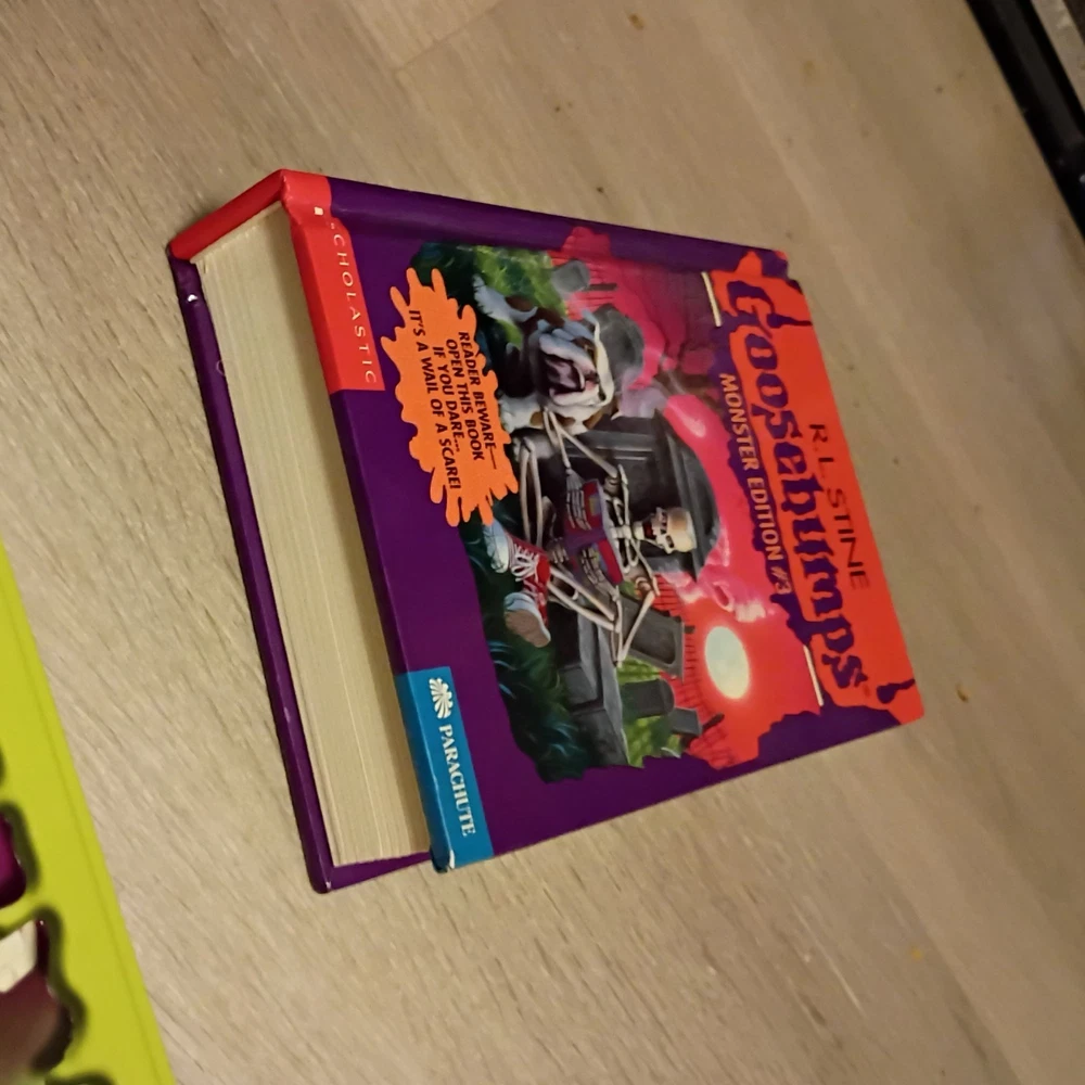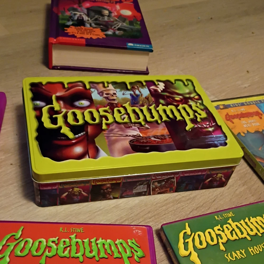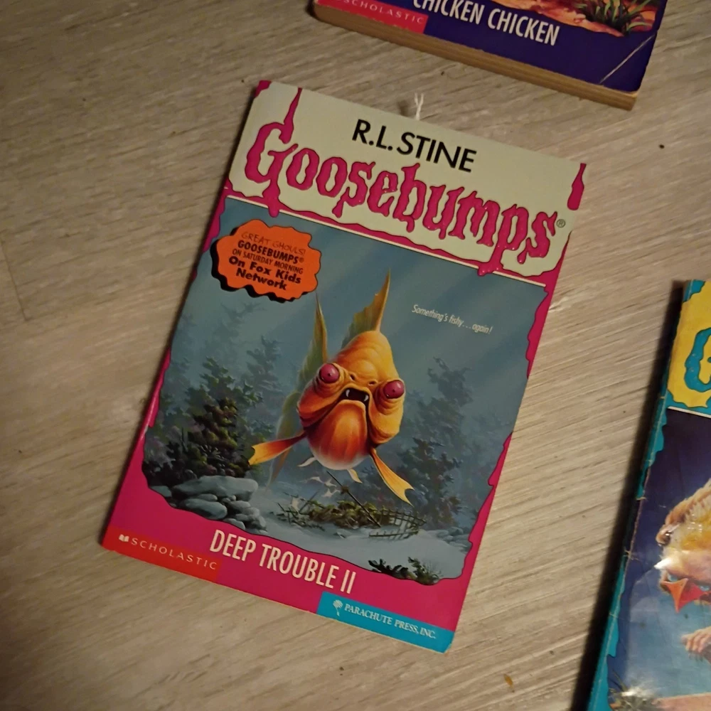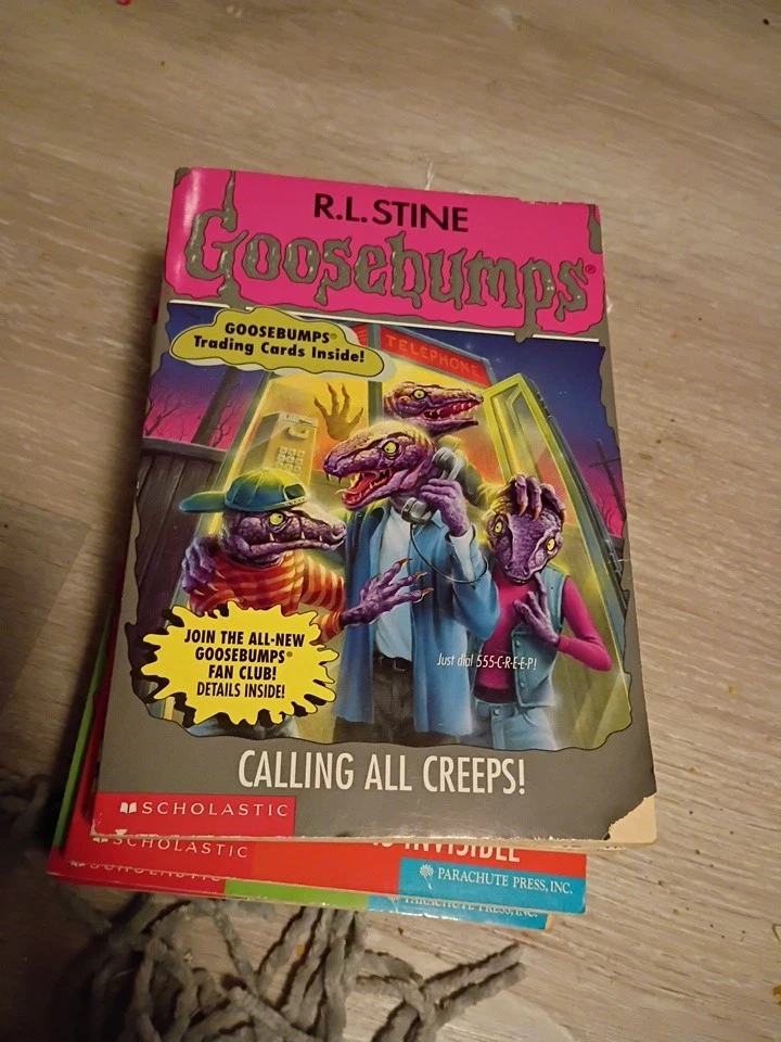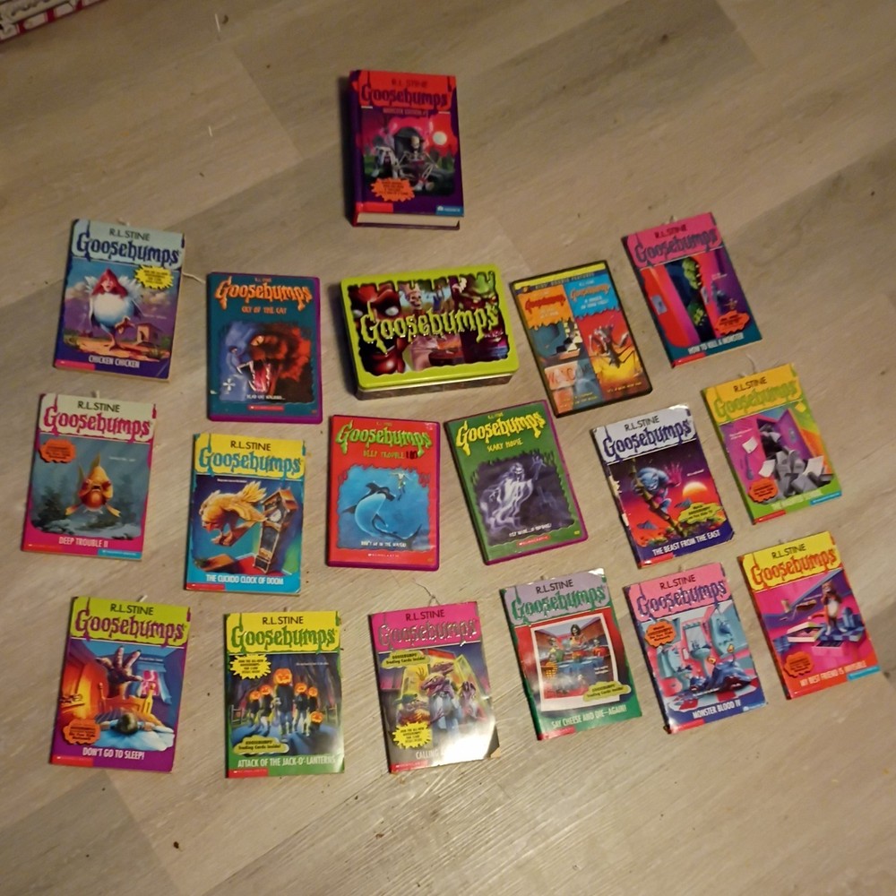 you get my best friend is invisible, the haunted school, the beast from the east, monster blood 4, say cheese and die again calling all creeps, attack of the jack-o'-lanterns, don't go to sleep, deep trouble too hard to find rare, chicken, how to kill a monster, and then the collection monster edition number 3 which will be pictured the books are an amazing condition the Cuckoo clock of Doom is a little rough there's a few bins but overall the covers look great the spines look great DVDs all look really pretty good they are untested but the two pack looks pretty good playable for sure step inside if you dare scary house DVD looks good the deep trouble one however is a little scratched up and I don't think it will play and then cry the cat is a little scratched but looks good you also get the large book 10 Goosebumps which is hard to find as well get these all together somewhere else you can't this is a heck of a bundle with rare books