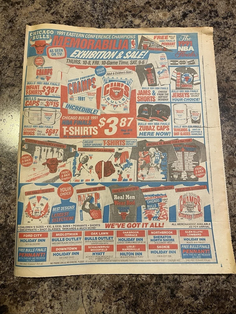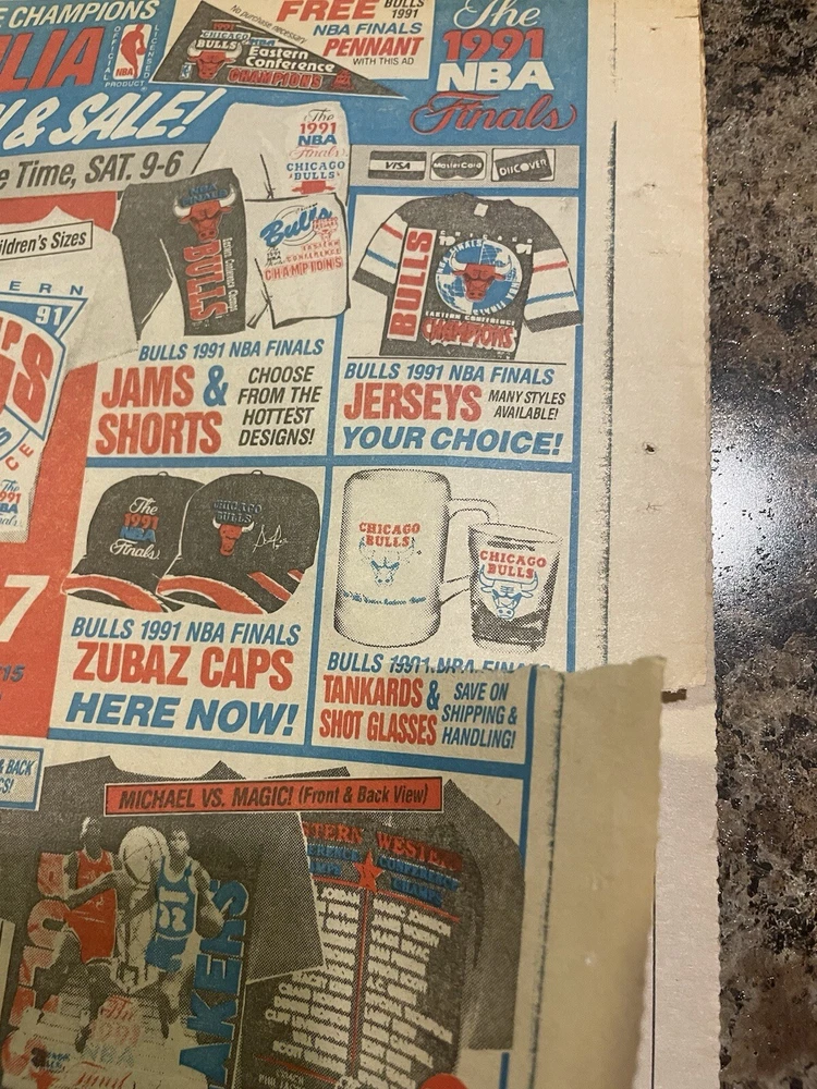 1991 Chicago Bulls Champions Apparel Ad Newspaper Page. Michael Jordan