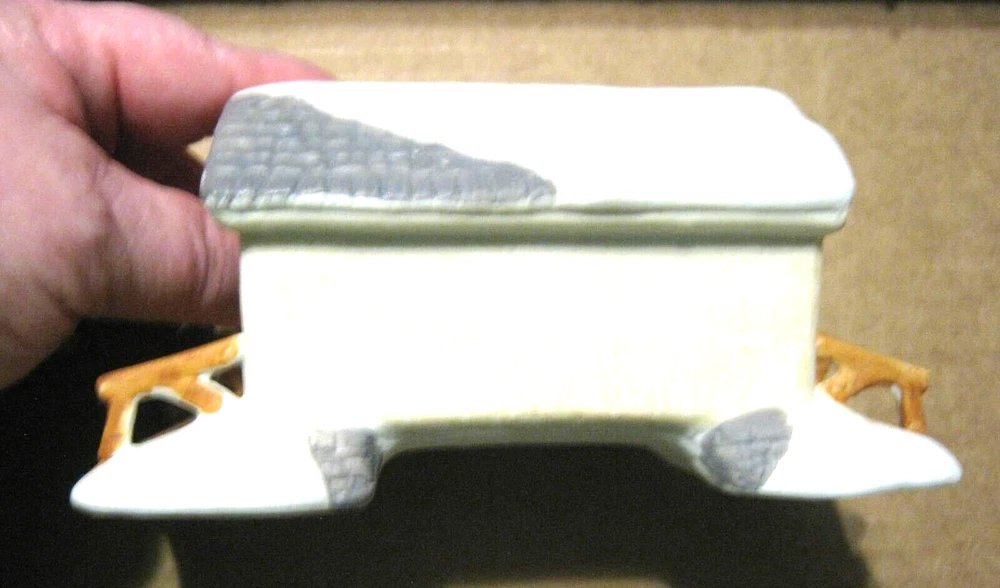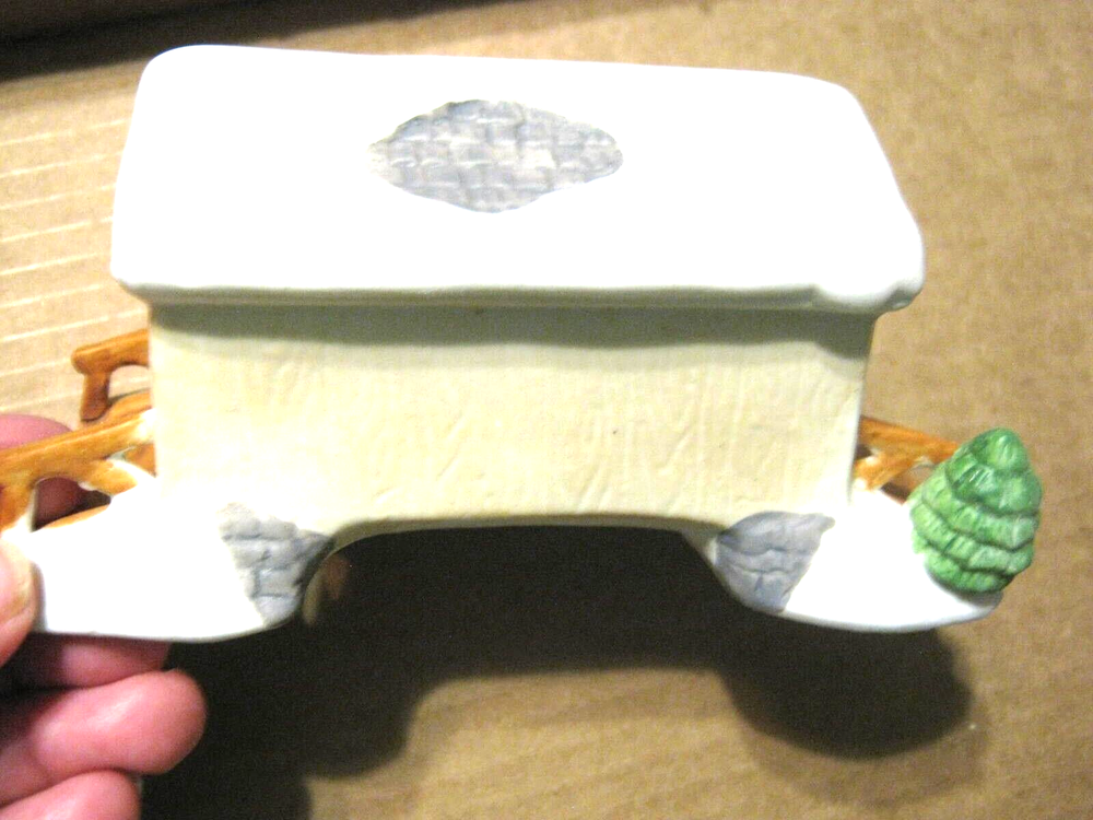 1991 Lemax Porcelain Light Brown Covered Bridge in Box. Item in good condition. Still has LeMax small sticker on the bottom. Box, as pictures show, has a ripped area and a price sticker in the corner. Size approx. 6" x 3" x 3". (D0601) Please see photos for condition and email any questions you may have.