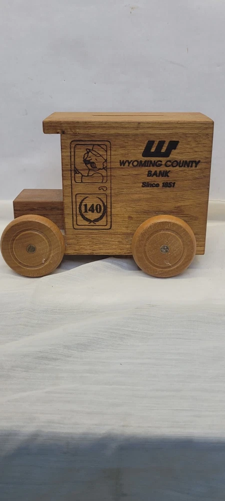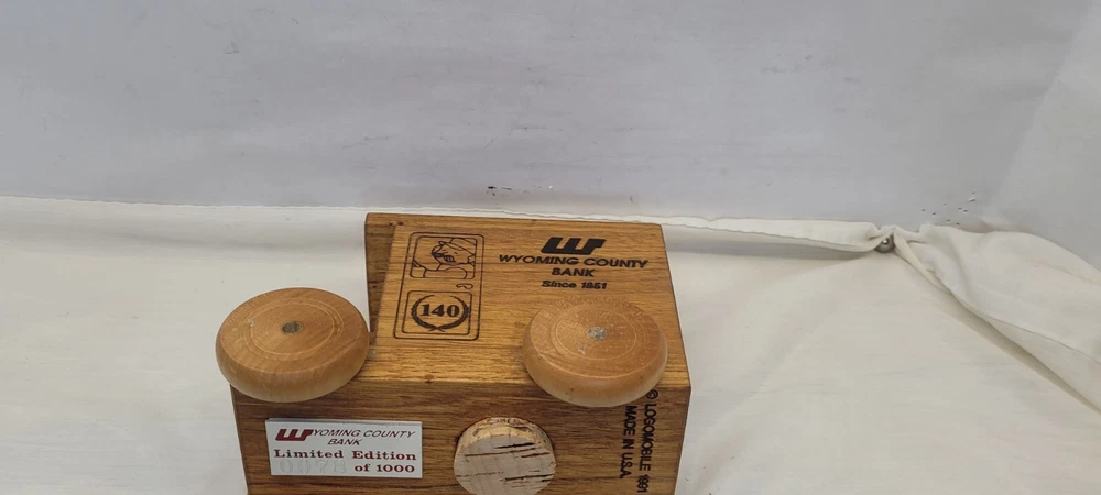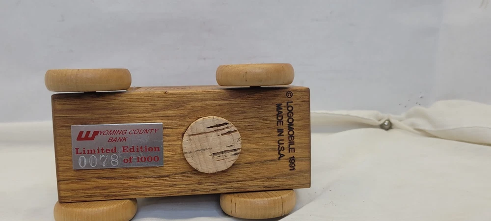 like new condition. This is a rare find for collectors of vintage toys and Wyoming County Bank memorabilia. #78 of 1000 , The 1991 Logo Mobile piggy bank is an original piece made of wood and featuring the Wyoming County Bank advertisement. It is a unique addition to any collection, with its theme of vehicles and brand of Logomobile. The piggy bank was made in the United States and is not a modified item. This is a must-have for anyone interested in still, piggy banks and collecting rare pieces for their collection.