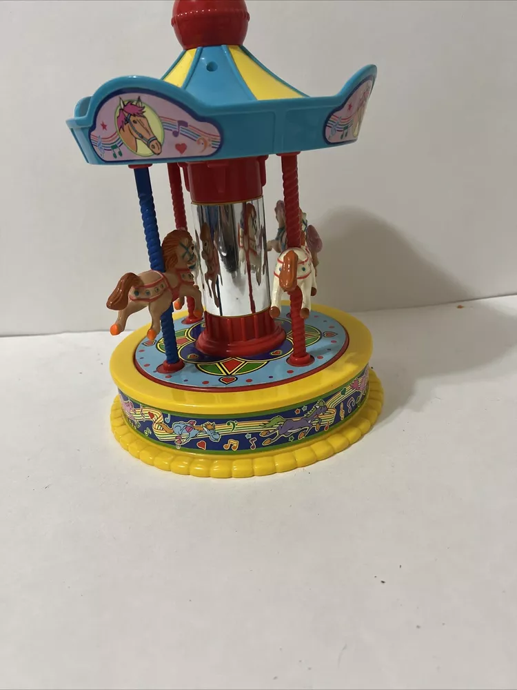 This vintage 1991 Redbox musical merry-go-round carousel is sure to bring back memories of childhood visits to the carnival or amusement park. Featuring a fun and playful design, this toy is perfect for boys and girls of all ages. The carousel is made in China and has been well-maintained, with no modifications needed. The merry-go-round is part of the popular "Around The World In 80 Days" character family and is a great addition to any collection of vintage toys. Whether you're a collector or just looking for a fun and unique gift, this Redbox musical merry-go-round carousel is sure to bring hours of enjoyment.