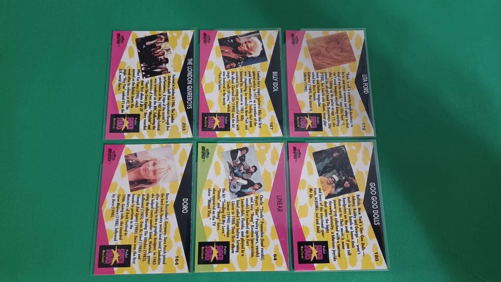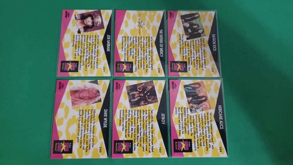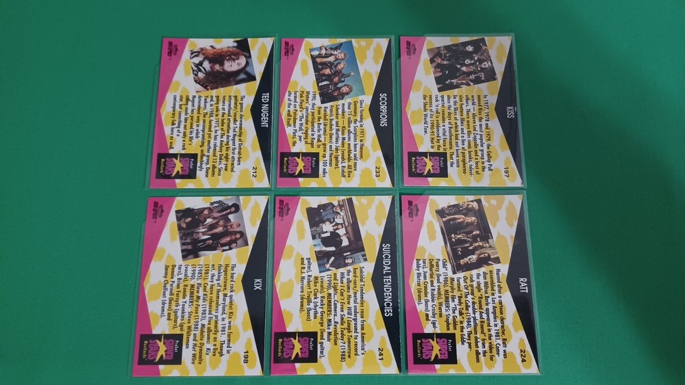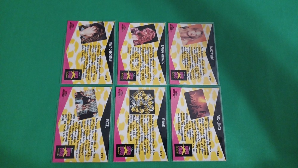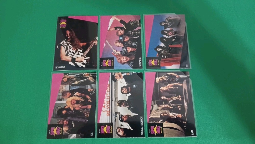 This listing is for 1991 Pro Set Super Stars Musicards Lot Of 66 Thrash Hair Rock Metal Ozzy Kiss. All cards are in fresh BCW penny sleeves and team bag. I only use the finest BRAND NEW card conservation supplies on all my cards selling (BCW Penny Sleeves & Top Loaders) and cut the top-right hand corner of the sleeves to prevent any damage to corners of cards. All cards are in EX to NM-MT condition. SHIPPING IS FREE ON ALL ORDERS, Whether if it's 1 Card or 100 Cards. I will combine shipping on multiple purchases and ship for FREE! BEST DEAL ON EBAY! FAST & SAFE SHIPPING! You will receive the best service, with a quality product, prompt FREE shipping and communication from me as a seller! I'm looking to sell full-time, therefore I really appreciate you giving me the opportunity to earn your business and grow as a seller on Ebay. Thank you for stopping by!