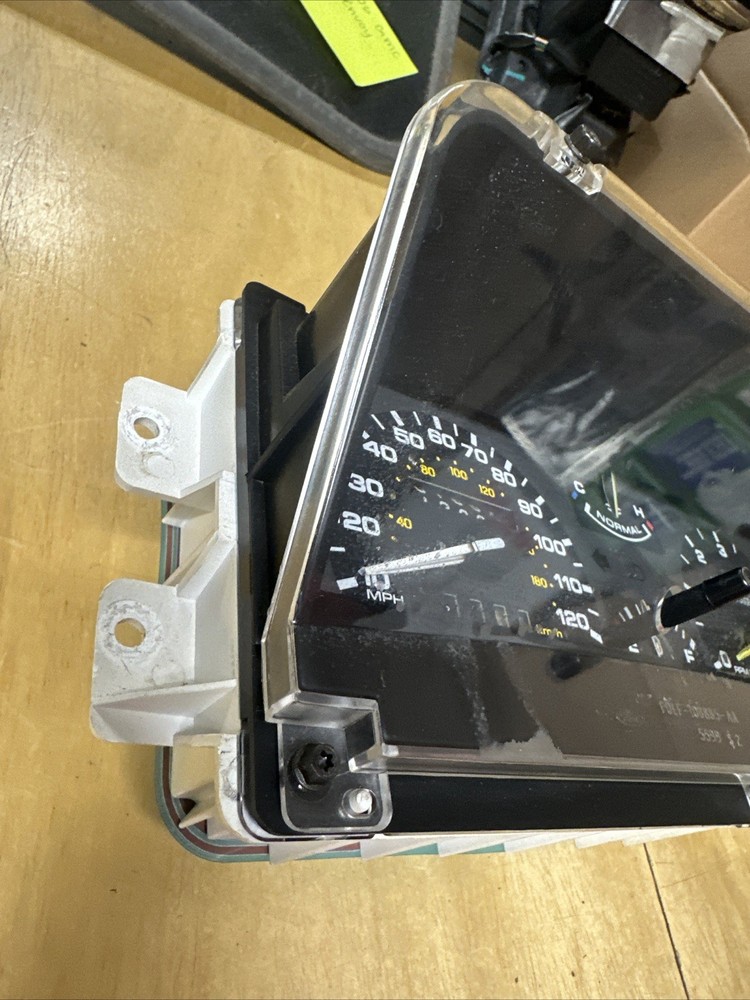 The product is a used 1992 Lincoln Mark VII Speedometer Cluster Gauge with the manufacturer part number F0LF-10B885-AA. It is a front left gauge designed by Ford, measuring speed in miles per hour (mph). This individual gauge is a key component of the car's interior, providing essential information to the driver about the vehicle's speed and performance.
