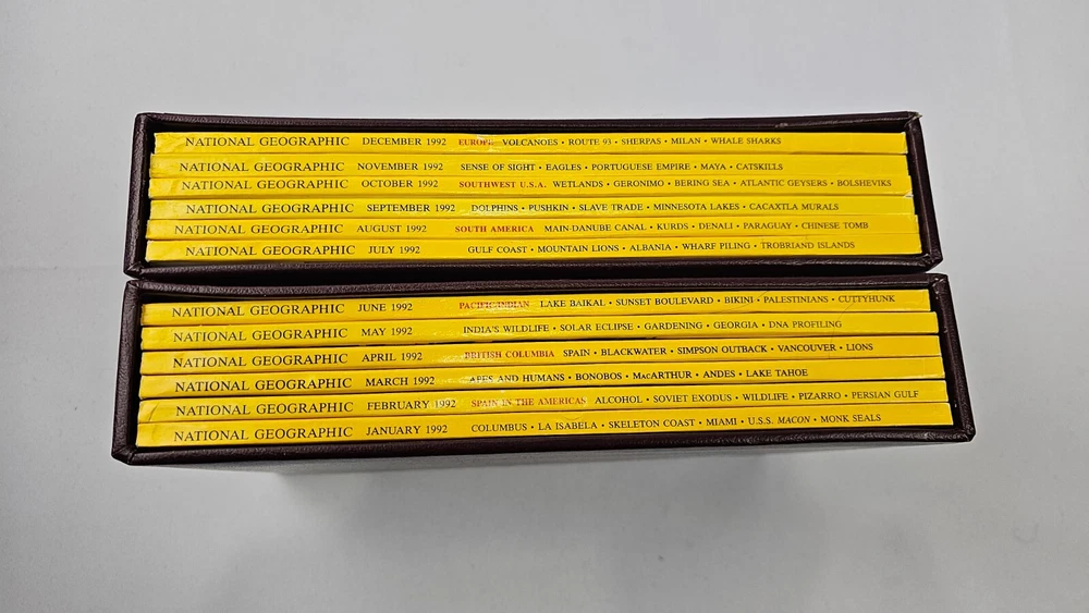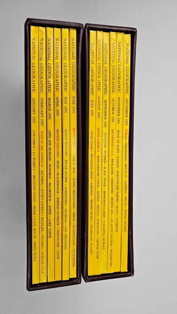 Available for sale in this lot is a National Geographic Magazine Complete Set & Slipcovers for 1992 (January-December). This includes all 12 magazines and all are in mostly good condition and include original maps. Please check the photos. Payment: PayPal or eBay Payments. Shipping: We ship using USPS Ground Advantage or UPS ground.