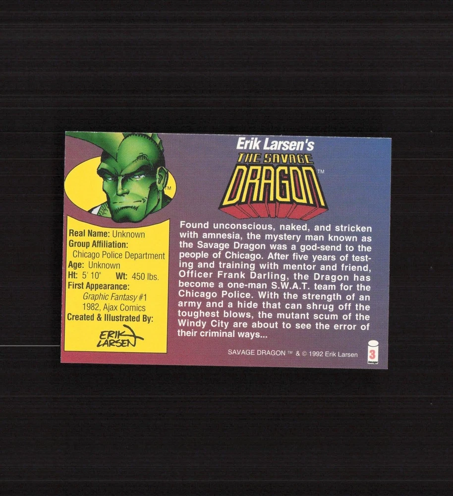 Item description : 1992 Wizard Magazine Series 1 - #3 Erik Larsen's The Savage Dragon Prismatic Border. See photos for details. IMAGINAIRE STORE: Formerly Simon Bourque Sports Cards. Since 1988 Imaginaire specialises in trading cards, stamps, collectibles and memorabilia. SHIPPING COSTS: Combine items and save on shipping costs. Price varies depending on the size and weight of the parcel. Canada is usually between $8 to $10, USA is usually $16 and International is $20. Please note that all packages over $100.00 value will be automatically sent via registered postal service with tracking number. Price varies depending on the size and weight of the parcel. Canada is usually between $12 to $15, USA is usually between $18 to $25 and International is usually $35 to $40. NOTICE INFORMATION: '' PLEASE NOTE'' Payment must be received within 7 business days of the end of auction unless prior arrangements have been made. Item(s) will be shipped in the next 48 hours after payment is received. If you have any questions, please email us.