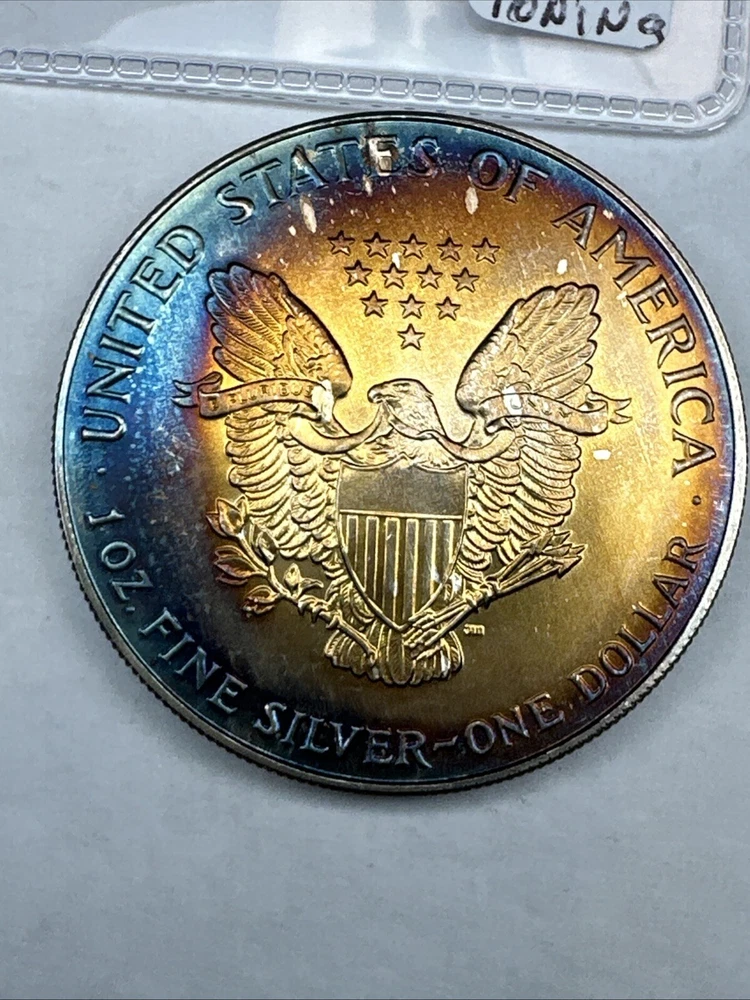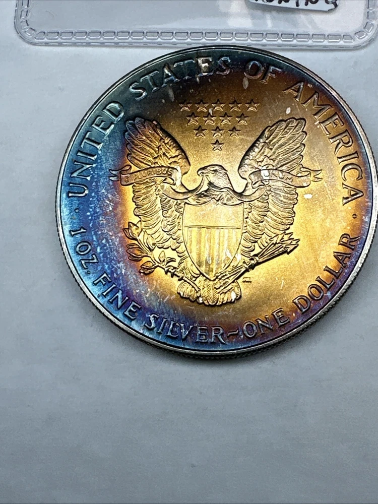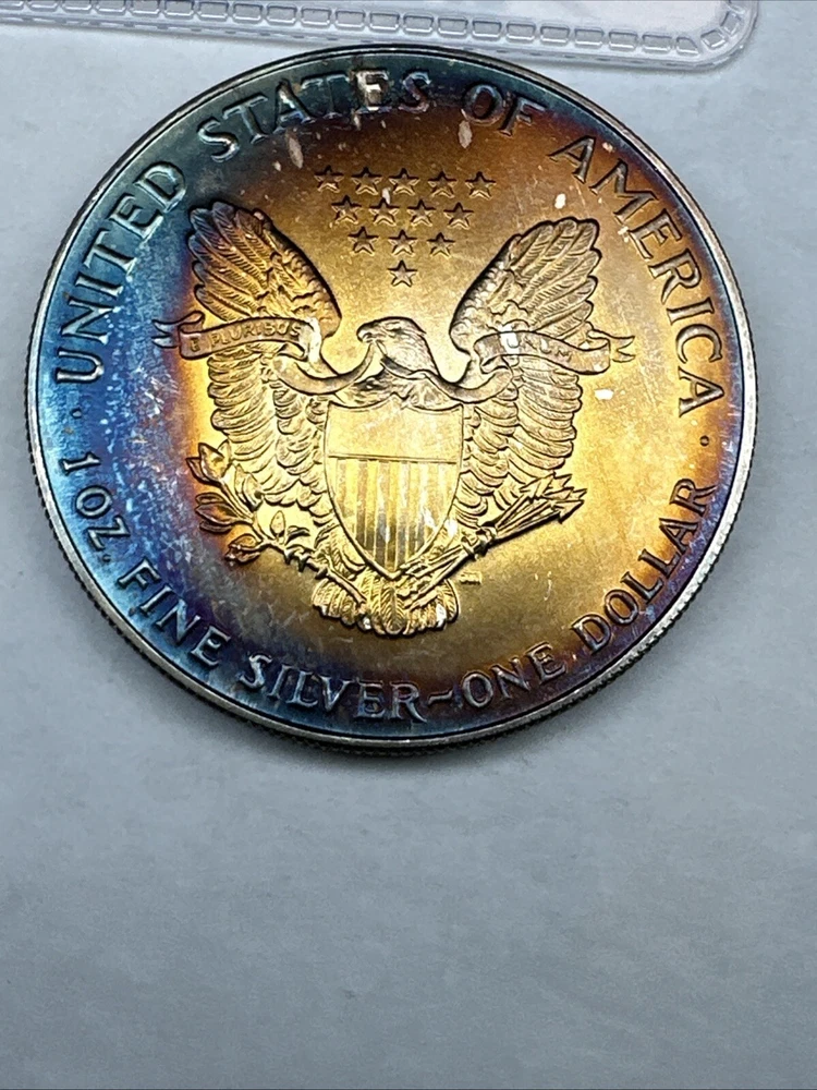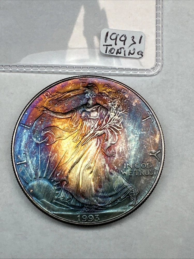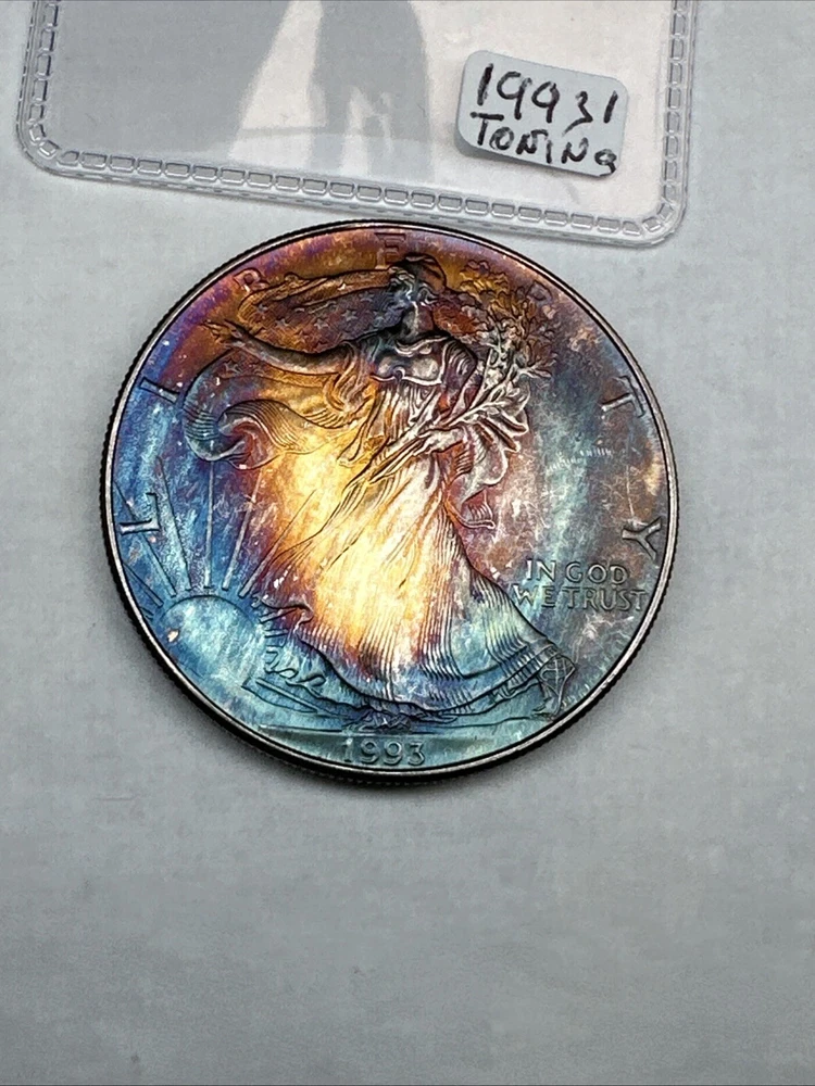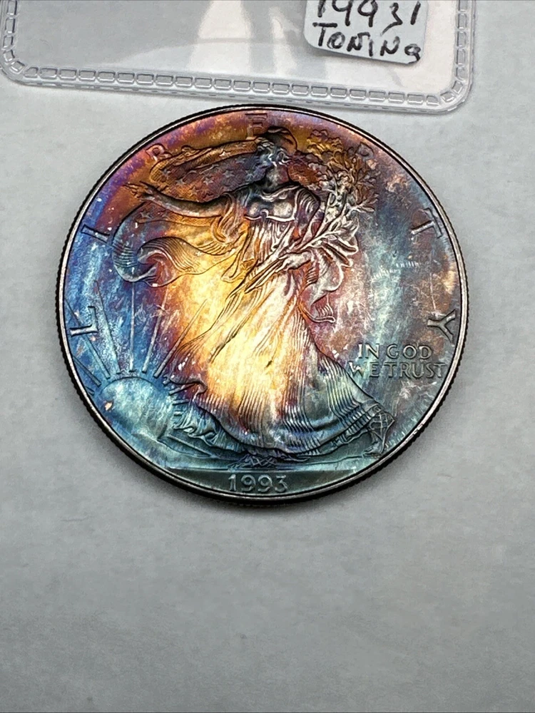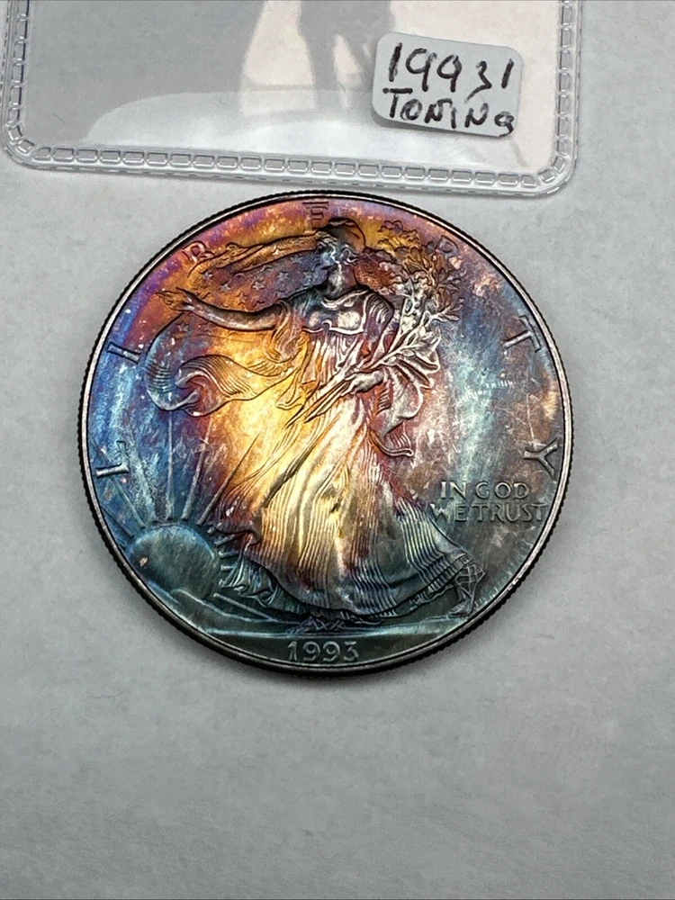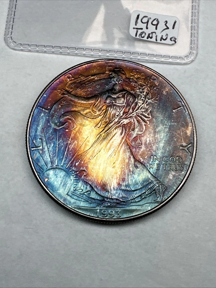 1993 American Silver Eagle! $1 1oz 0.999 Fine Cool Rainbow Toning! Uncirculated