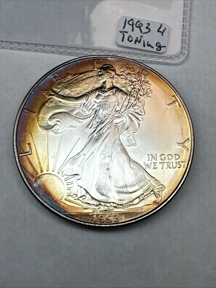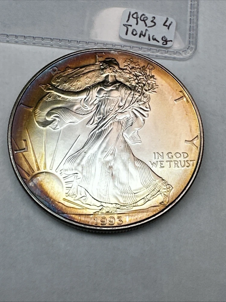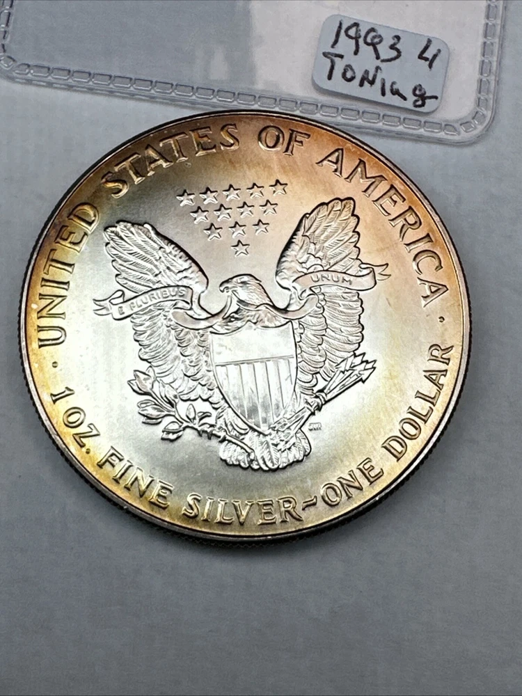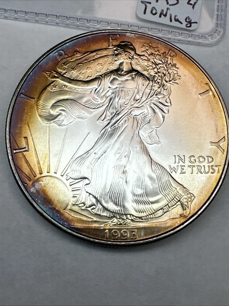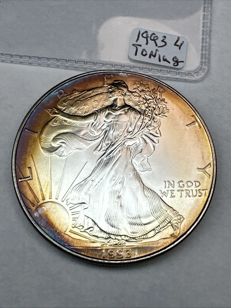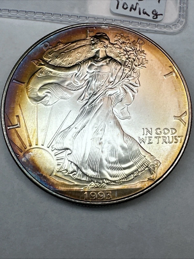 1993 American Silver Eagle! $1 1oz 0.999 Fine Silver.Cool Toning! Uncirculated