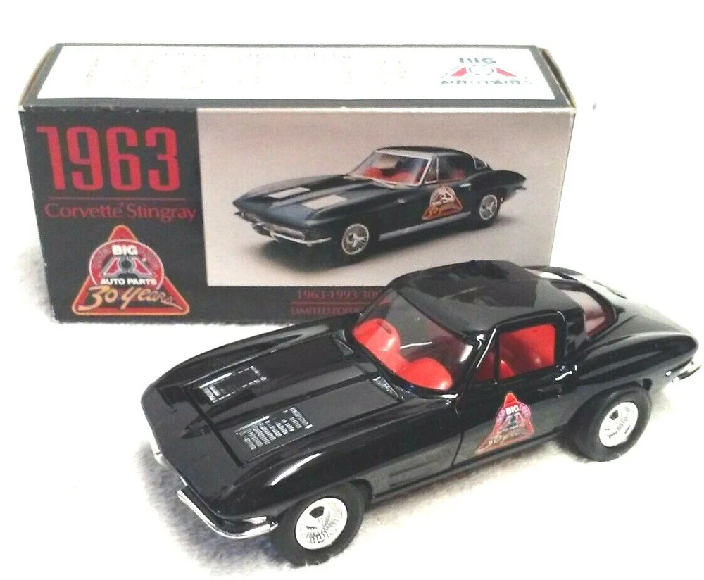 HELLO YOU ARE BIDDING ON 1993 ERTL1963 CHEVROLET CORVETTE STINGRAY BIG A AUTO PARTS 30tH ANN. COLLECTOR TOY CAR IN BOX NICE ORIGINAL 10/20 PLEASE LOOK AT MY OTHER AUCTIONS I WILL GLADLY COMBINE ACTUAL SH BUT YOU MUST WAIT FOR AN INVOICE OR I CAN NOT COMBINE SHIPPING