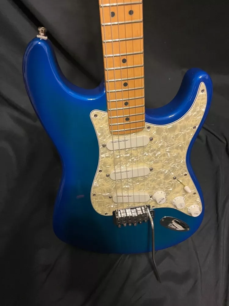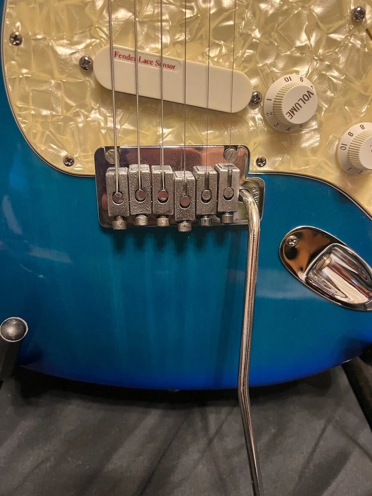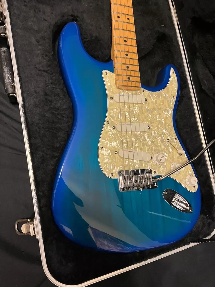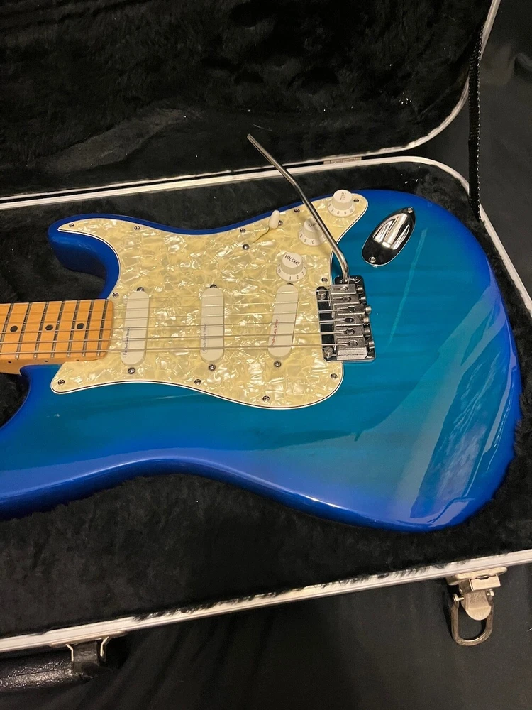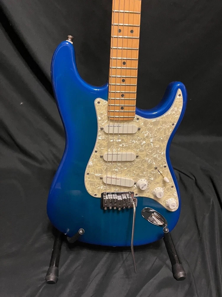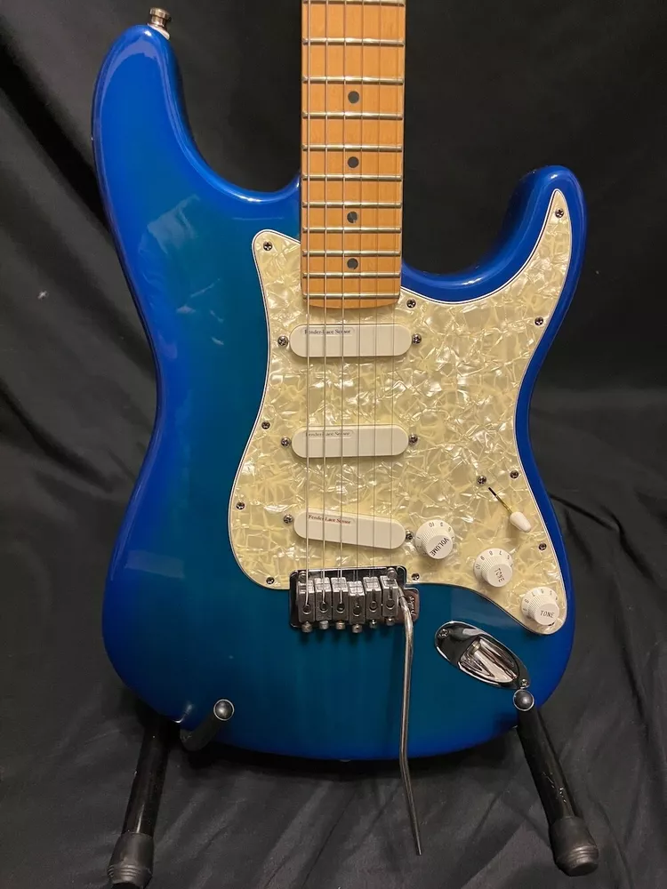 This listing is for a 1993 Fender Deluxe Strat Plus Stratocaster Guitar in Blue Burst W/OHSC. Great looking Fender Deluxe Plus strat from 1993. This one is in excellent condition and plays great. The Lace Sensors are intact as you can see. Very nice finish on this one. I had a hard time getting it to show up fully in the pics, but the blue burst has a lot of green hues in it from certain angles and certain light. You can get the feel for it in a few of the pics, but it looks even better in person. There is some very slight play wear here and there, but take a look at the pics, it is very, very clean. Neck is great, it is well setup and plays superbly. Comes as pictured with original Fender hard case. More pics and info available, just visit Roadhouse Vintage. Buyer pays fixed $100 shipping/insurance in the US(lower 48)