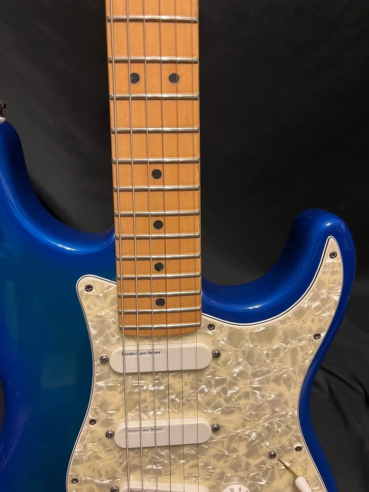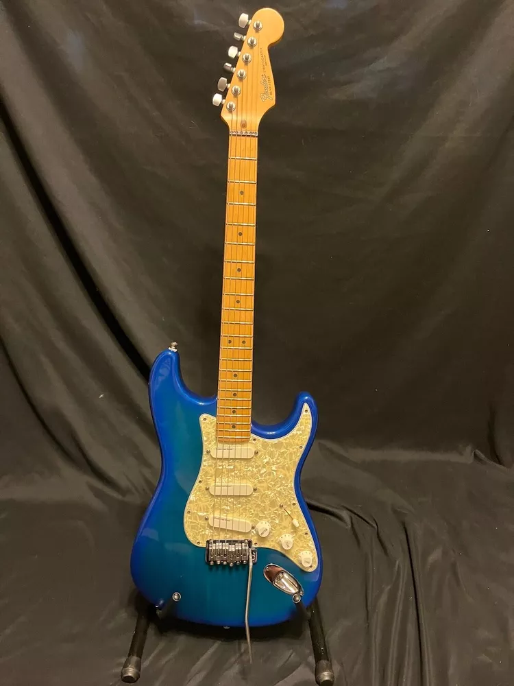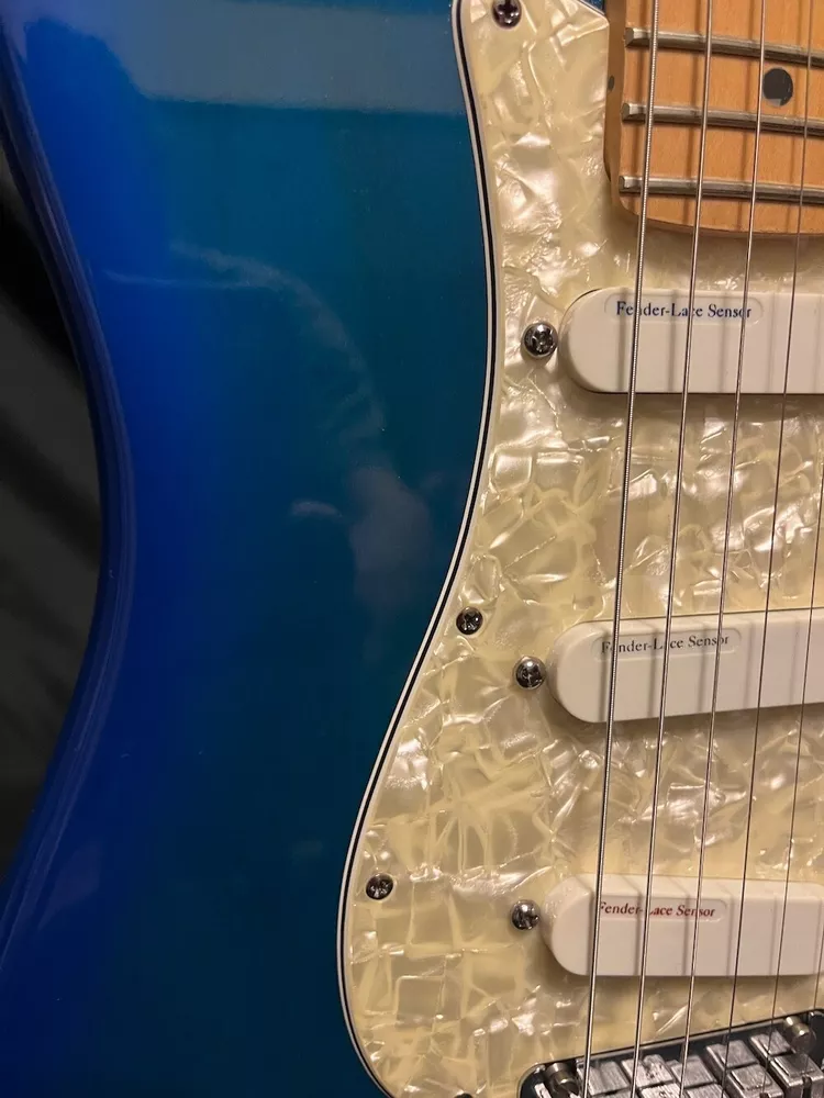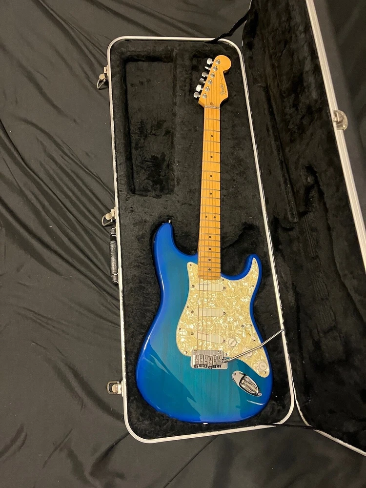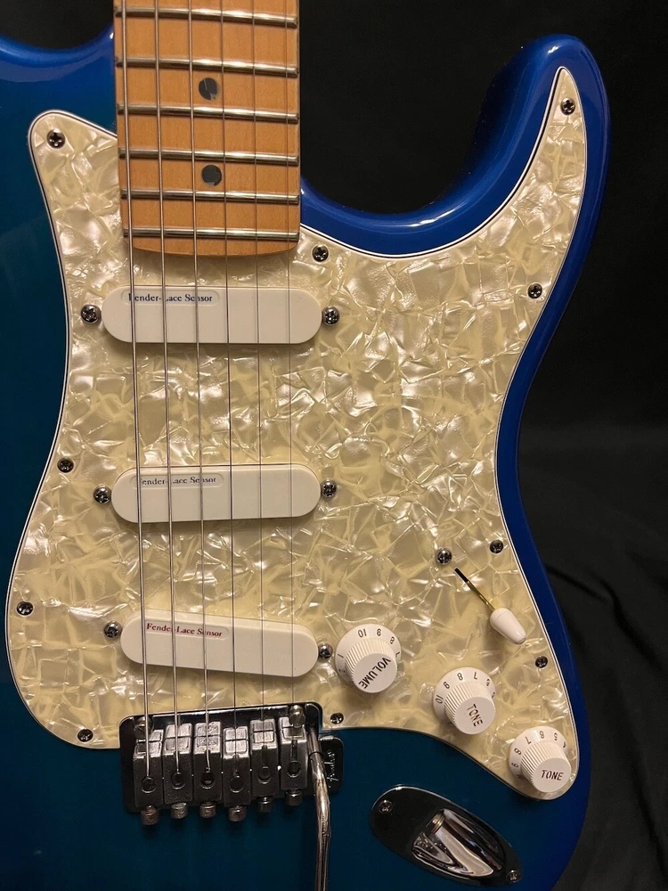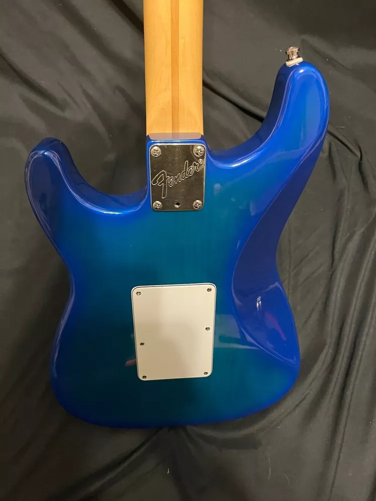 This listing is for a 1993 Fender Deluxe Strat Plus Stratocaster Guitar in Blue Burst W/OHSC. Great looking Fender Deluxe Plus strat from 1993. This one is in excellent condition and plays great. The Lace Sensors are intact as you can see. Very nice finish on this one. I had a hard time getting it to show up fully in the pics, but the blue burst has a lot of green hues in it from certain angles and certain light. You can get the feel for it in a few of the pics, but it looks even better in person. There is some very slight play wear here and there, but take a look at the pics, it is very, very clean. Neck is great, it is well setup and plays superbly. Comes as pictured with original Fender hard case. More pics and info available, just visit Roadhouse Vintage. Buyer pays fixed $100 shipping/insurance in the US(lower 48)