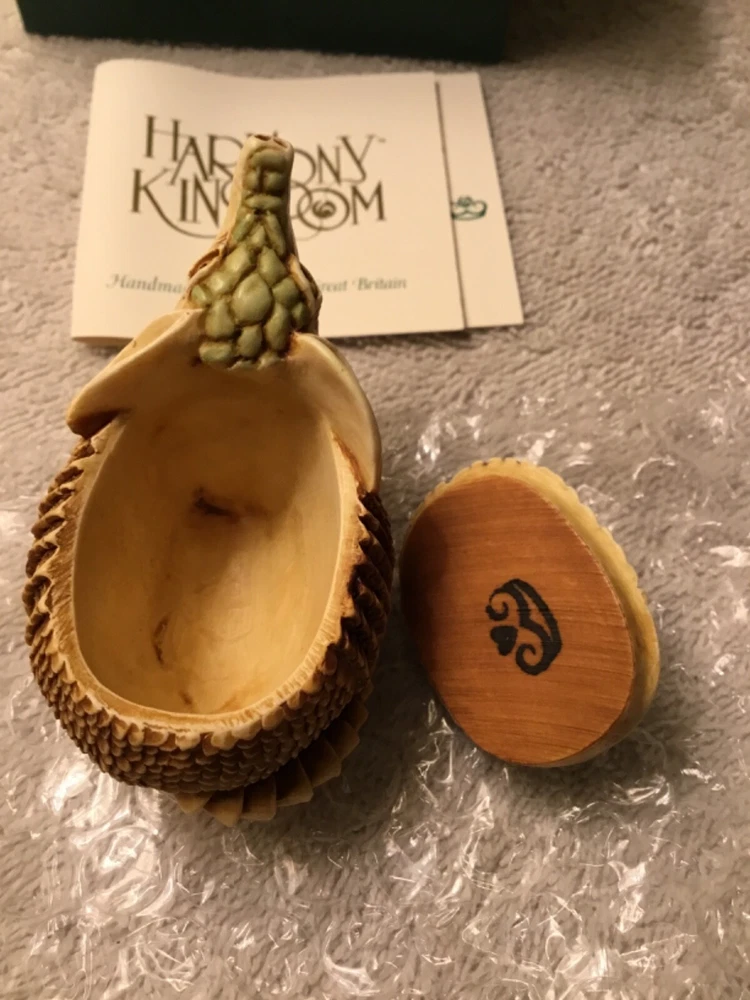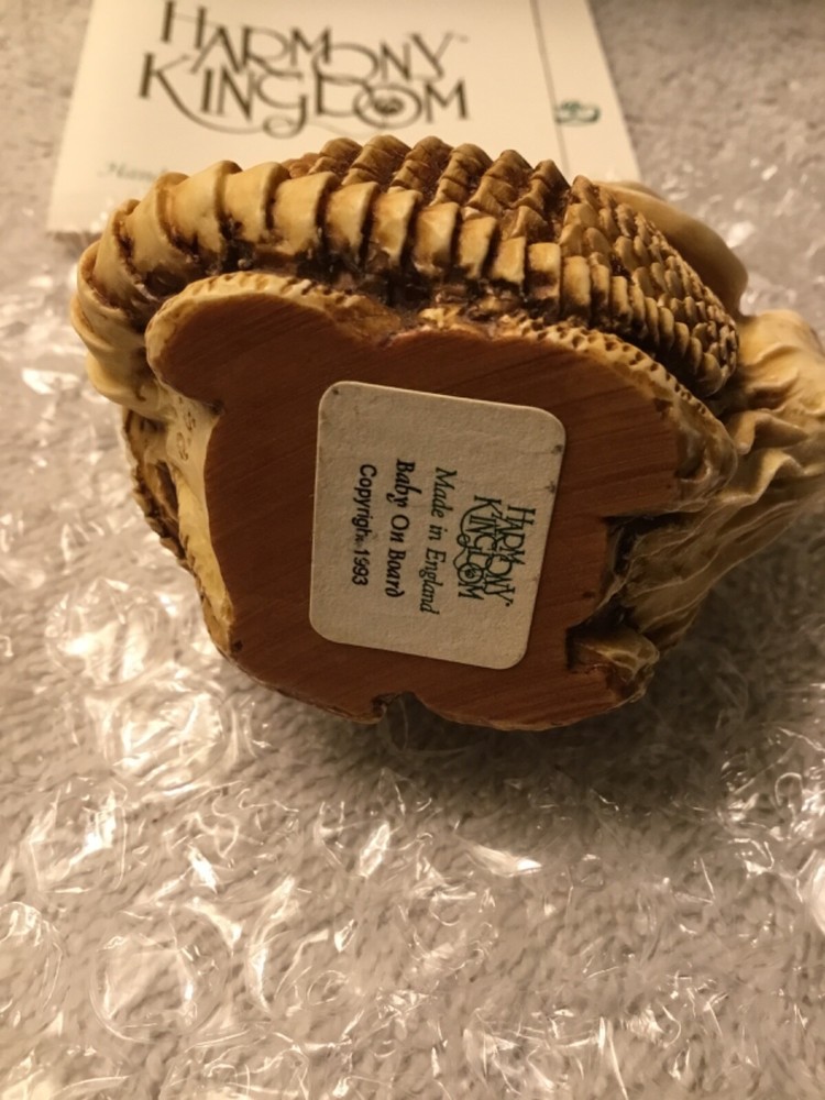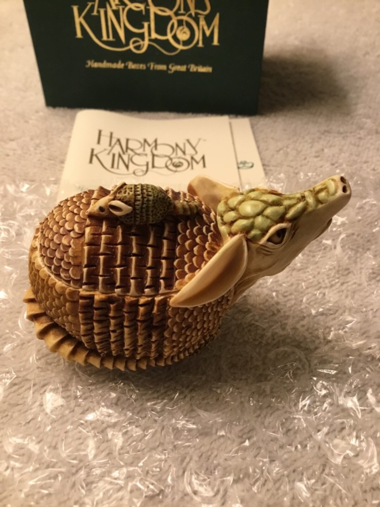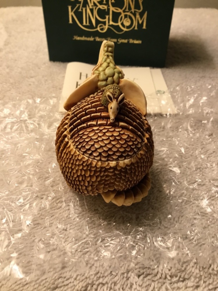 Harmony Kingdom Baby On Board Armadillo TJAR Treasure Jest Box Figurine 1993 New in Box 2nd time removed • Artist Peter Calvesbert • Treasure Jest Collection Small • Retired 12/1997 Picture part of description, FOB shipping point