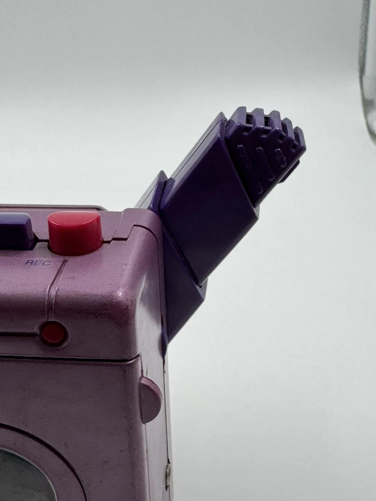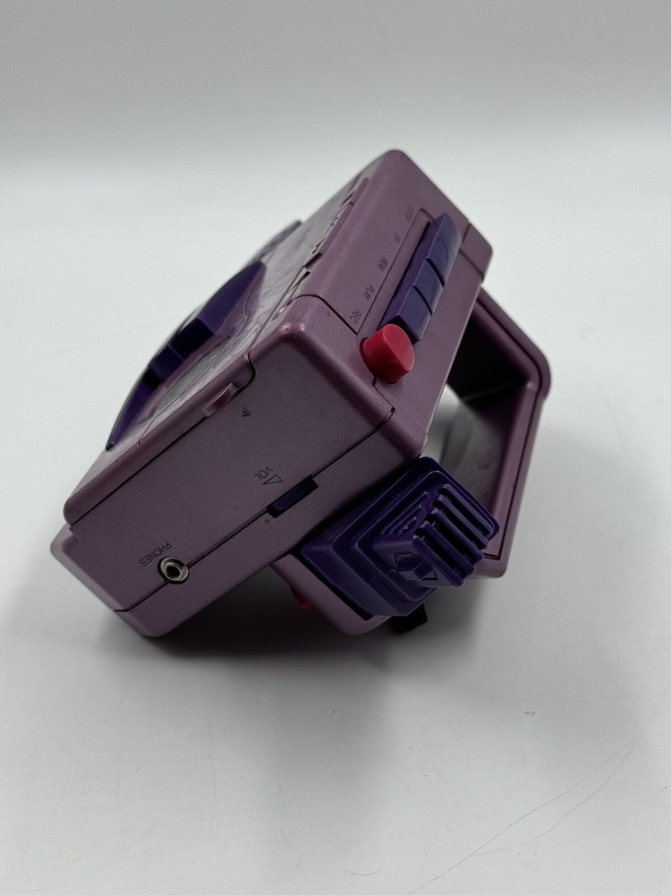 No tape to fully test. Tested with batteries. Ff & Rew function cause the pegs to spin. Sold as is. Missing battery cover. Has a few scratches and dings. Some textured damage(maybe from tape adhesive or sticker) on window to cassette
