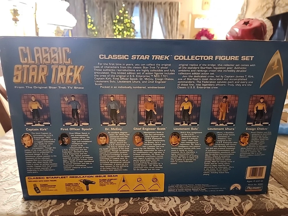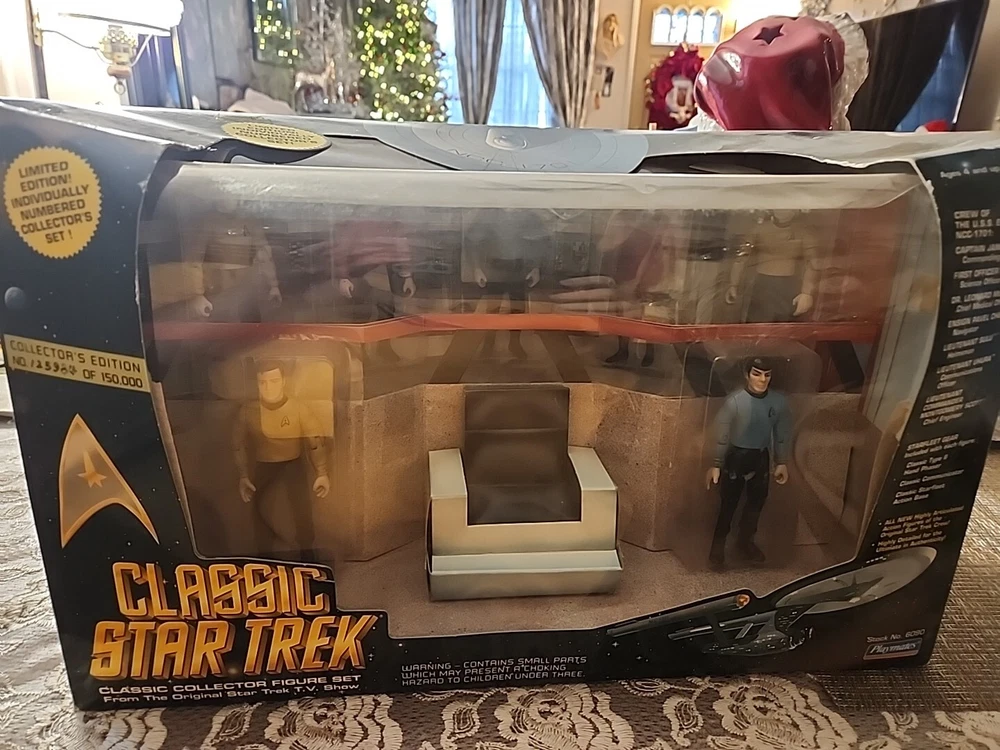 This limited edition collector figure set from Playmates is a must-have for any Star Trek fan. Featuring Captain James T. Kirk from the original series, this vintage item is a true gem for collectors. The figure is in its original packaging, making it a great addition to any collection. The figure was manufactured in China and is a part of the Star Trek franchise. It is perfect for display and showcasing your love for science fiction and horror. This rare item is a great find for anyone who is looking for something unique and collectible.